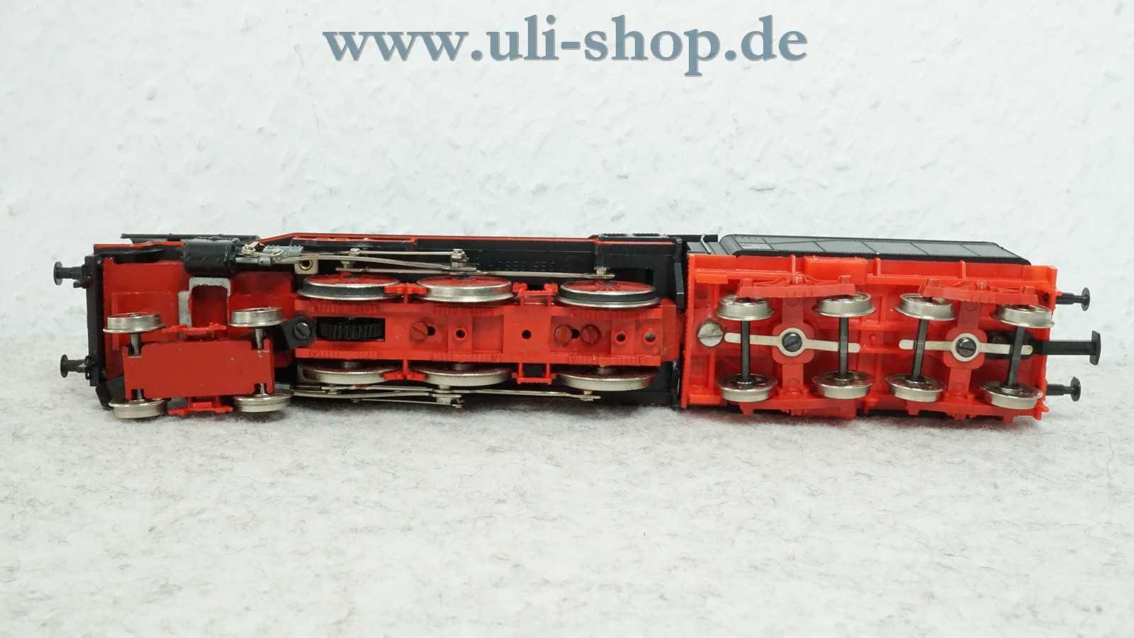 Den optischen Zustand würde ich als bespielt/gebraucht mit normalen Gebrauchsspuren (durch Spielbetrieb) bezeichnen. Die Originalverpackung hat Gebrauchsspuren (z. B. abgegriffen oder Lagerspuren). Beim Tender scheinen die Drehgestelle recht lose zu sein. Ein Windleitblech ist etwas beschädigt.
