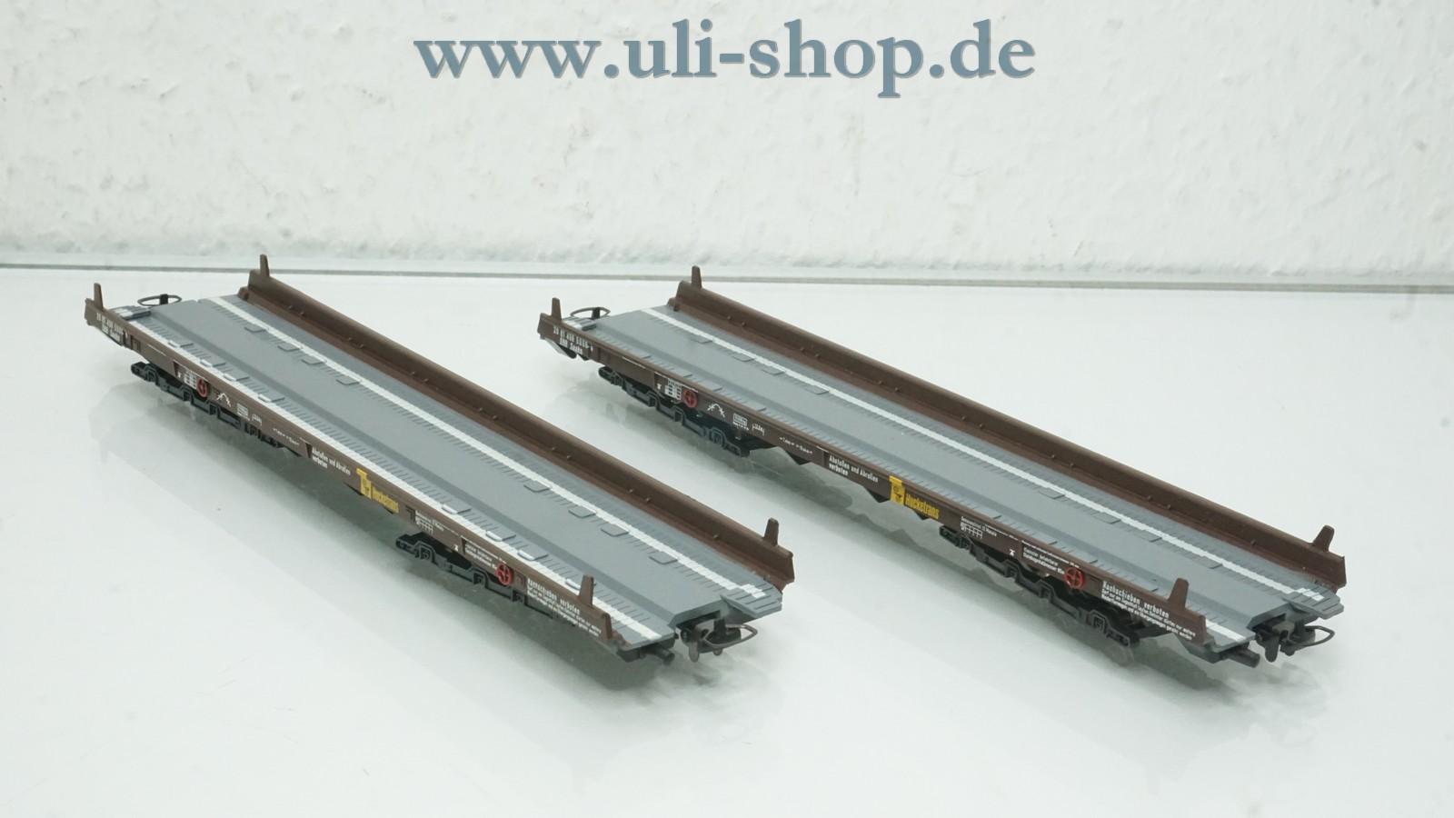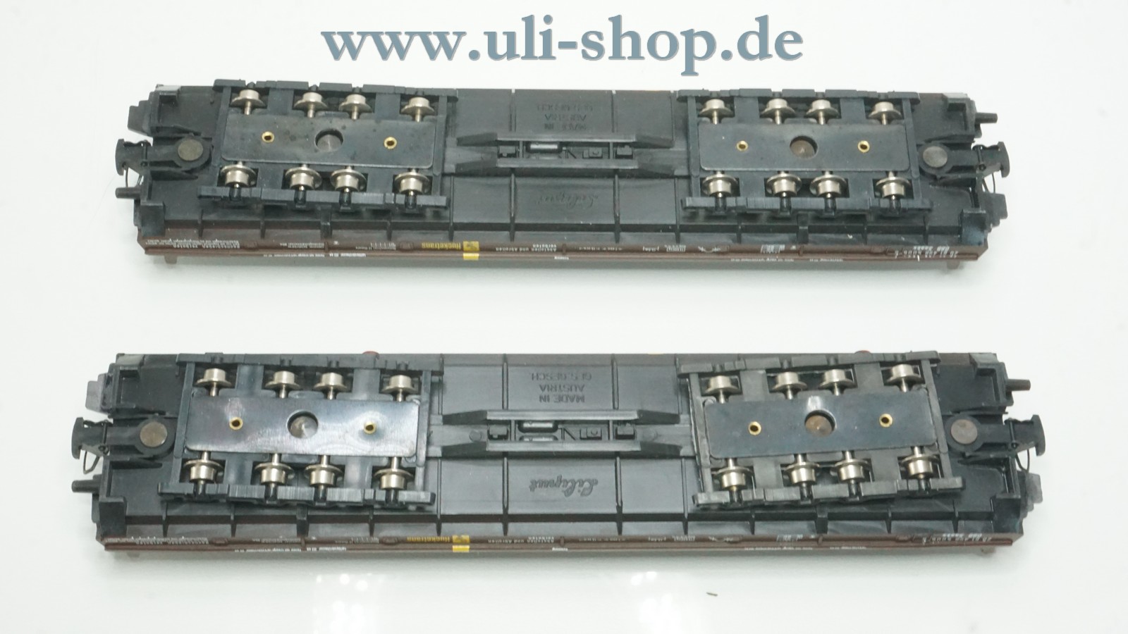 Liliput H0 Wagenpackung mit der Artikelnummer 200 10 Niederflurwagen-Paar Rollende Landstraße der DB. Der Artikel ist für den Betrieb mit Gleichstrom vorgesehen. Die Originalverpackung ist vorhanden.
