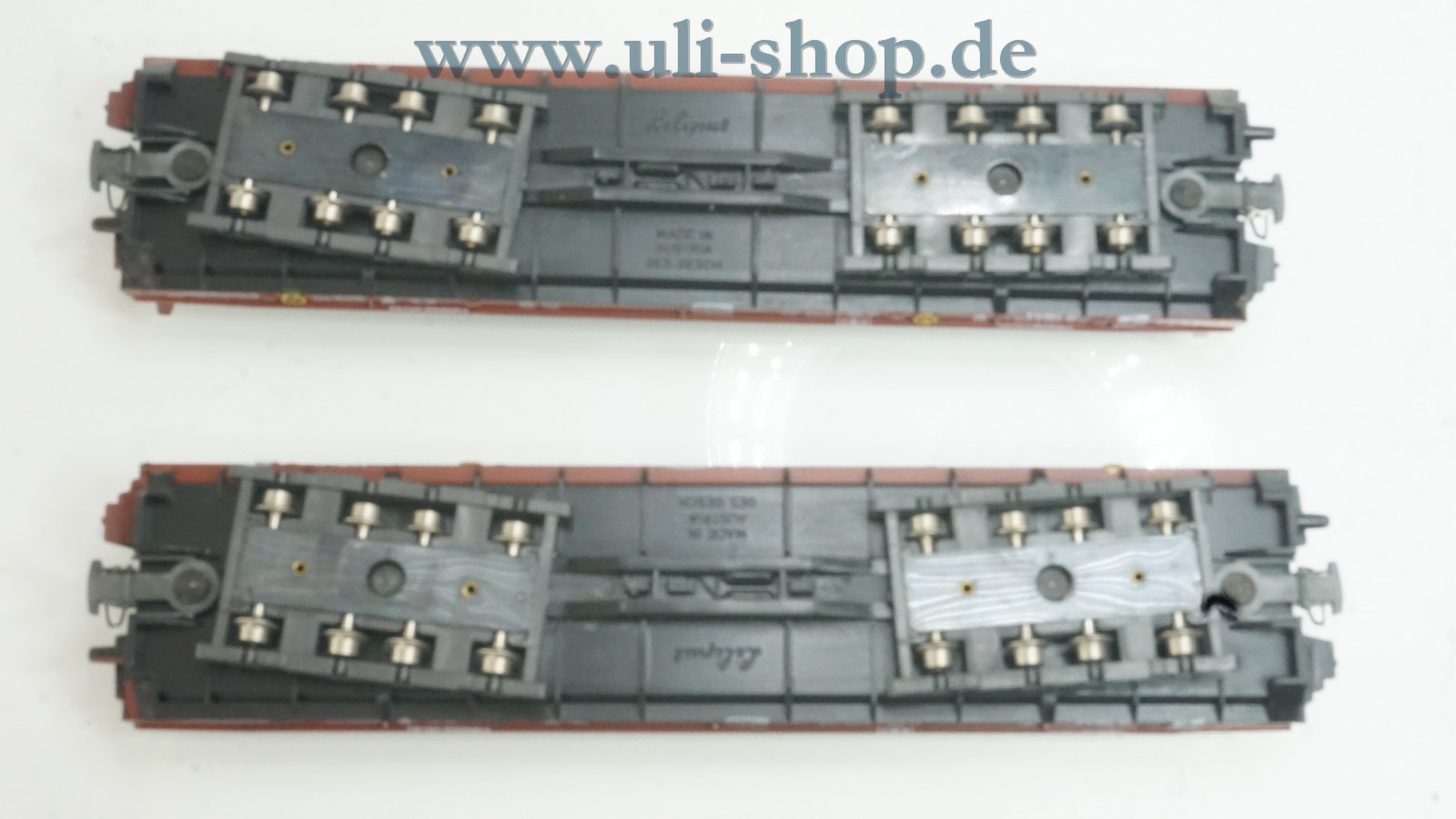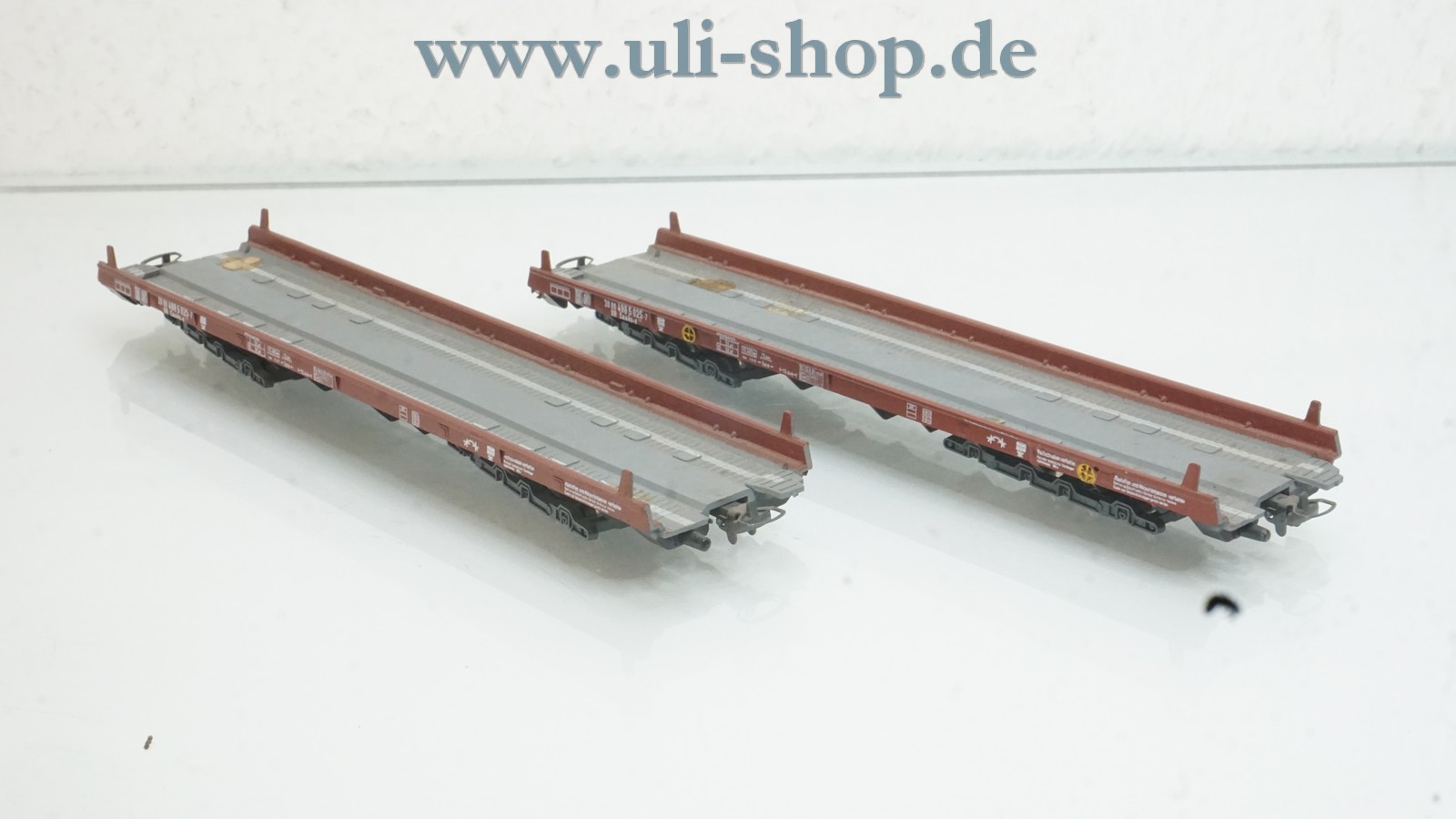 Liliput H0 Güterwagen mit der Artikelnummer 20000 Niederflurwagen Rollende Landstraße der DB. Der Artikel ist für den Betrieb mit Gleichstrom vorgesehen. Die Originalverpackung ist vorhanden. Bei der Verschmutzung, die etwa rechts unten auf den Bildern zu sehen ist, handelt es um eine Verschmutzung der Linse und nicht des Modells.