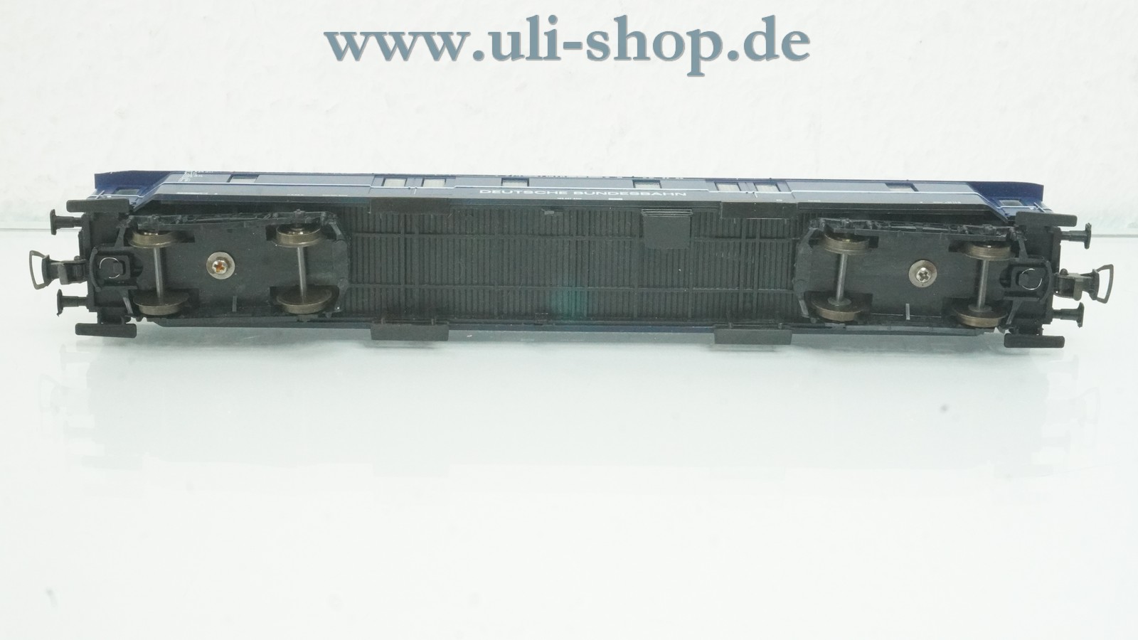 Den optischen Zustand würde ich als bespielt/gebraucht mit normalen Gebrauchsspuren (durch Spielbetrieb) bezeichnen. Die Kartonhaut ist leicht beschädigt. Der Wagen hat einen kleinen Lackfehler am Wagenkasten. Die Originalverpackung hat Gebrauchsspuren (z. B. abgegriffen oder Lagerspuren).
