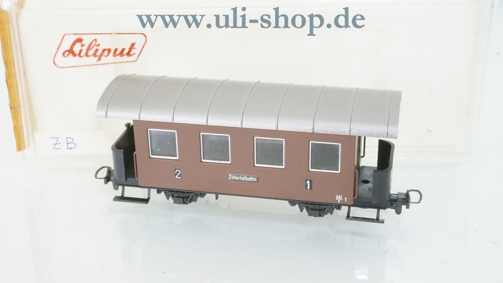 Liliput H0e Personenwagen mit der Artikelnummer 713 Zillertalbahn 1. /2. Klasse ÖBB mit Tonnendach. Der Artikel ist für den Betrieb mit Gleichstrom vorgesehen. Die Originalverpackung ist vorhanden. Die Spurweite entspricht 9mm (Spur N).