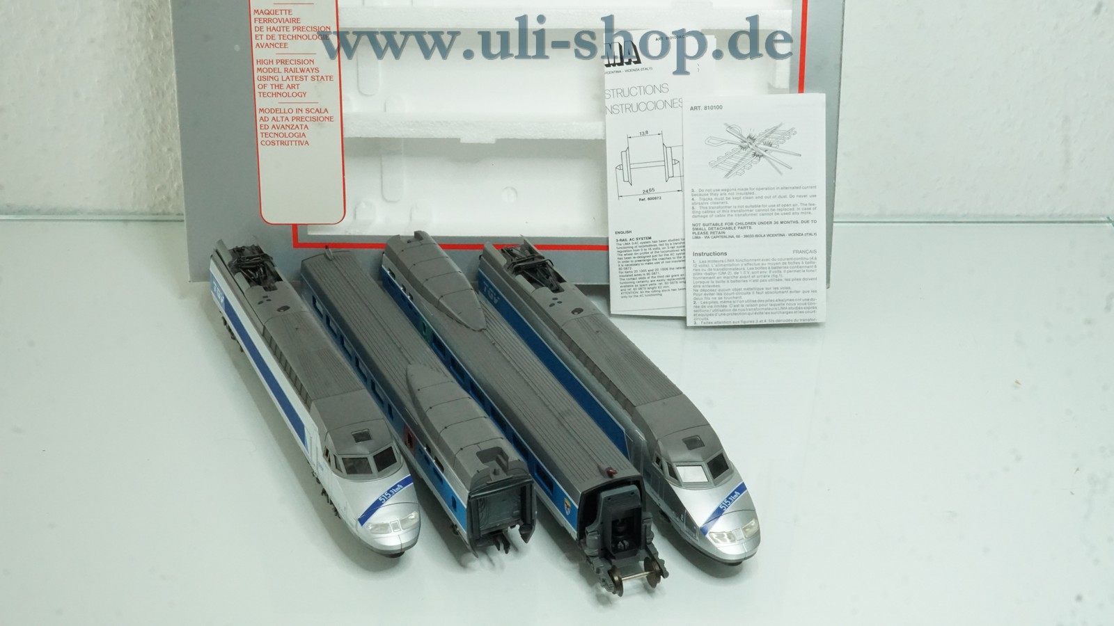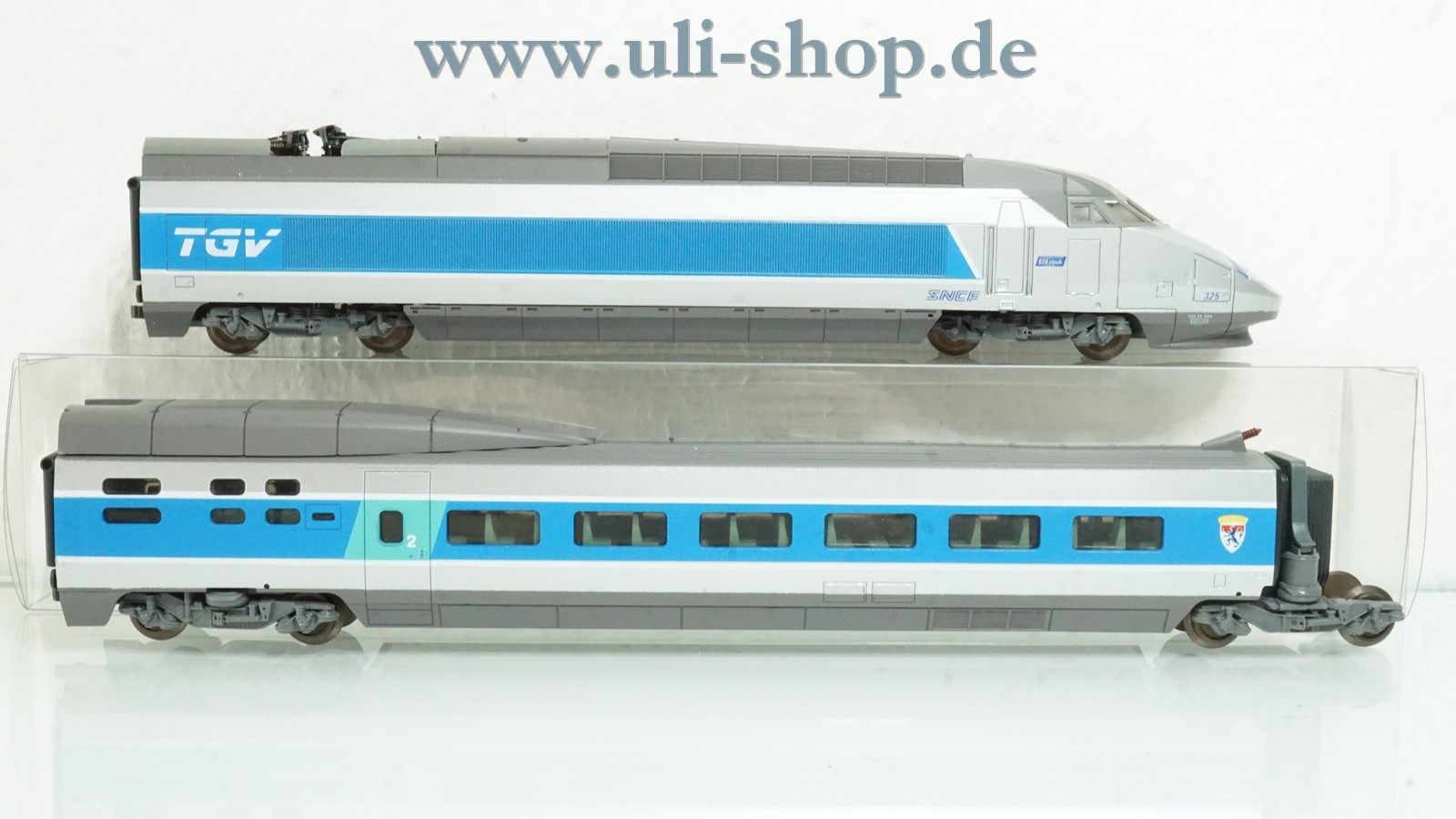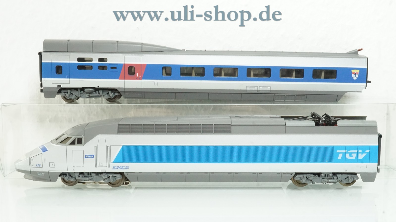 Lima H0 Triebwagen mit der Artikelnummer 149714AC TGV Atlantic der SNCF. Der Artikel ist für den Betrieb mit Wechselstrom vorgesehen. Die Lok ist analog, sie kann daher nicht auf digital gesteuerten Anlagen fahren. Die Originalverpackung ist vorhanden.
