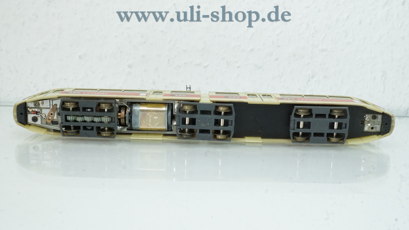 Lima H0 Straßenbahn mit der Artikelnummer 208560 Düwag GT6 Bochum AEG Lavamat. Der Artikel ist für den Betrieb mit Gleichstrom vorgesehen. Die Lok ist analog, sie kann daher nicht auf digital gesteuerten Anlagen fahren. Die Originalverpackung ist vorhanden. Das Modell ist eine Sonderserie von Vedes / MC / Spielzeugring.