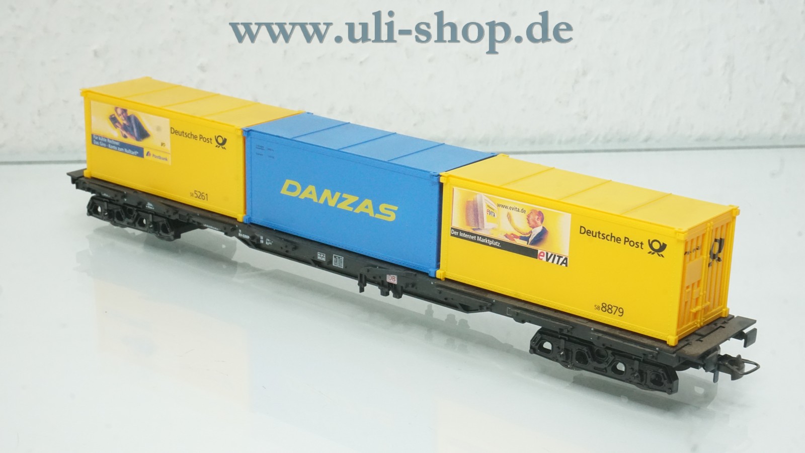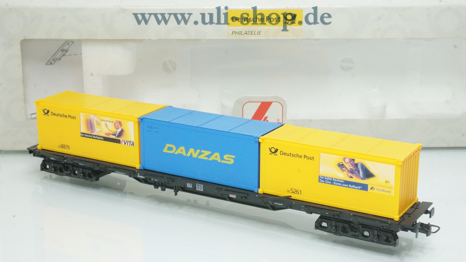 Lima H0 Güterwagen Containertragwagen. Der Artikel ist für den Betrieb mit Gleichstrom vorgesehen. Die Originalverpackung ist vorhanden. Deutsche Post Philatelie.