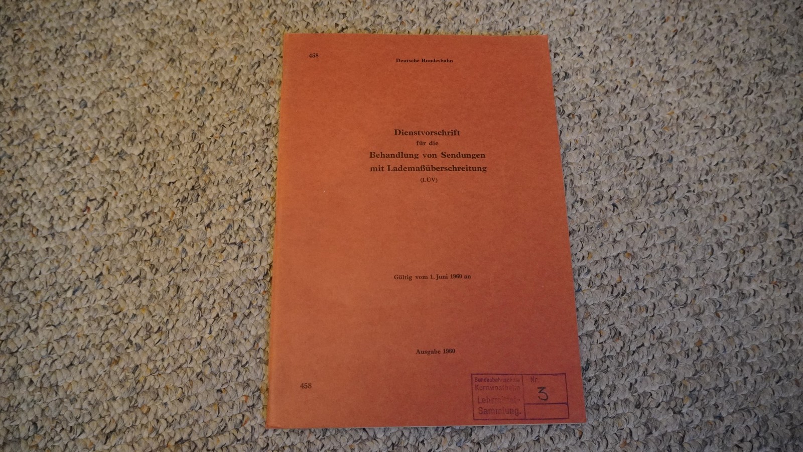 Literatur im wenig bespieltem Zustand mit leichten Gebrauchsspuren. Gültig vom 01. 06. 1960, Stempel: Lehrmittelsammlung, alterbedingt leicht vergilbt.