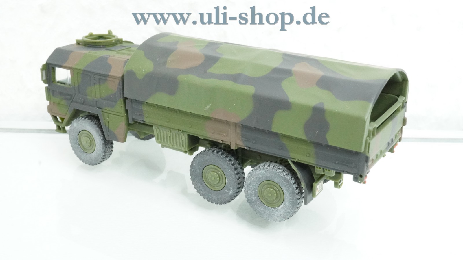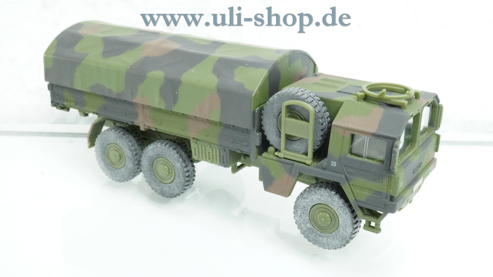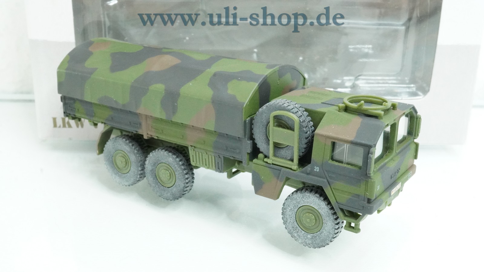 Märklin H0 Modellauto mit der Artikelnummer 18535 MAN LKW 7tGL MIL 4MFOR-Serie. Die Originalverpackung ist vorhanden. Es handelt sich um Bundeswehrmetallmodelle aus der 4MFOR-Serie von Märklin.