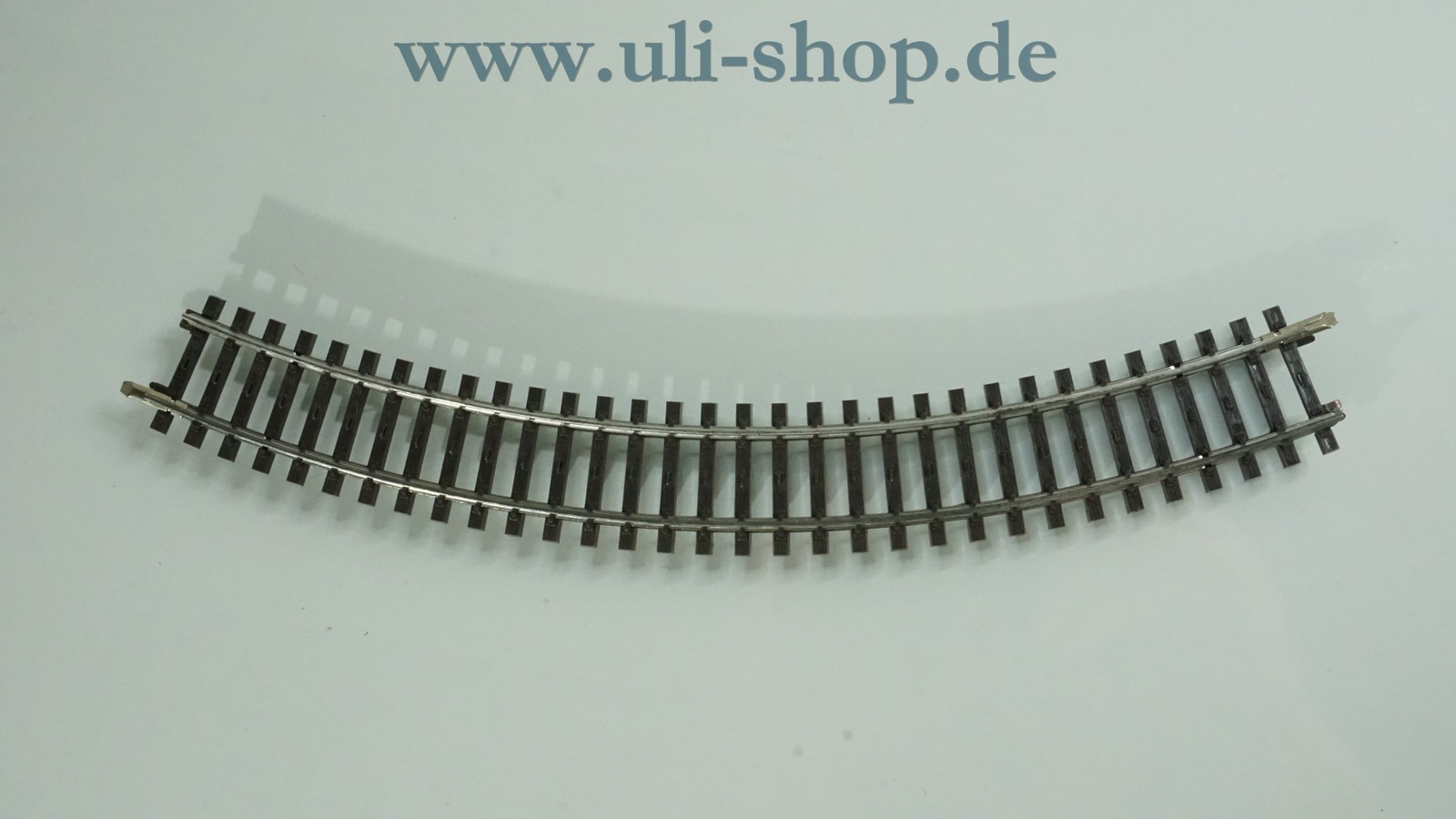 Märklin H0 K-Gleis gebogen Hohlprofil mit der Artikelnummer 2110 im bespieltem/gebrauchtem Zustand mit normalen Gebrauchsspuren (durch Spielbetrieb) ohne Originalverpackung. Evtl. minimale Farb- und Klebreste, ggf. auch minimal Rost, aber keine Beschädigungen. Vereinzelt können die Enden der Gleisschwellen abgebrochen werden. Es kann sein, dass die Kabel etwas kurz sind. Bei dem Bild handelt es sich um ein Musterbild, welches beispielhaft den Zustand des Artikels darstellen soll.
