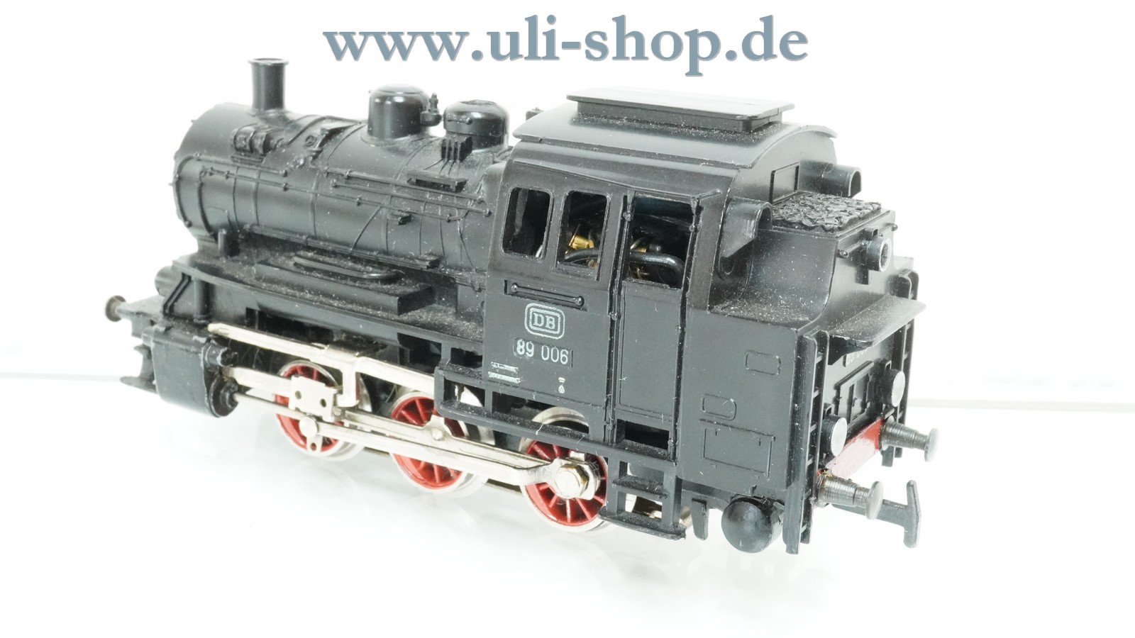 Märklin H0 Dampflok mit der Artikelnummer 3000 Br. 89 006 der DB. Der Artikel ist für den Betrieb mit Wechselstrom vorgesehen. Die Lok ist analog, sie kann daher nicht auf digital gesteuerten Anlagen fahren. Die Originalverpackung ist leider nicht mehr vorhanden.