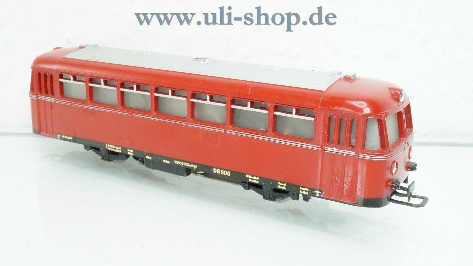 Märklin H0 Triebwagen mit der Artikelnummer 3016 Schienenbus 959 190 Stuttgart. Der Artikel ist für den Betrieb mit Wechselstrom vorgesehen. Die Lok ist analog, sie kann daher nicht auf digital gesteuerten Anlagen fahren. Die Originalverpackung ist leider nicht mehr vorhanden. Aufschrift DB 800.
