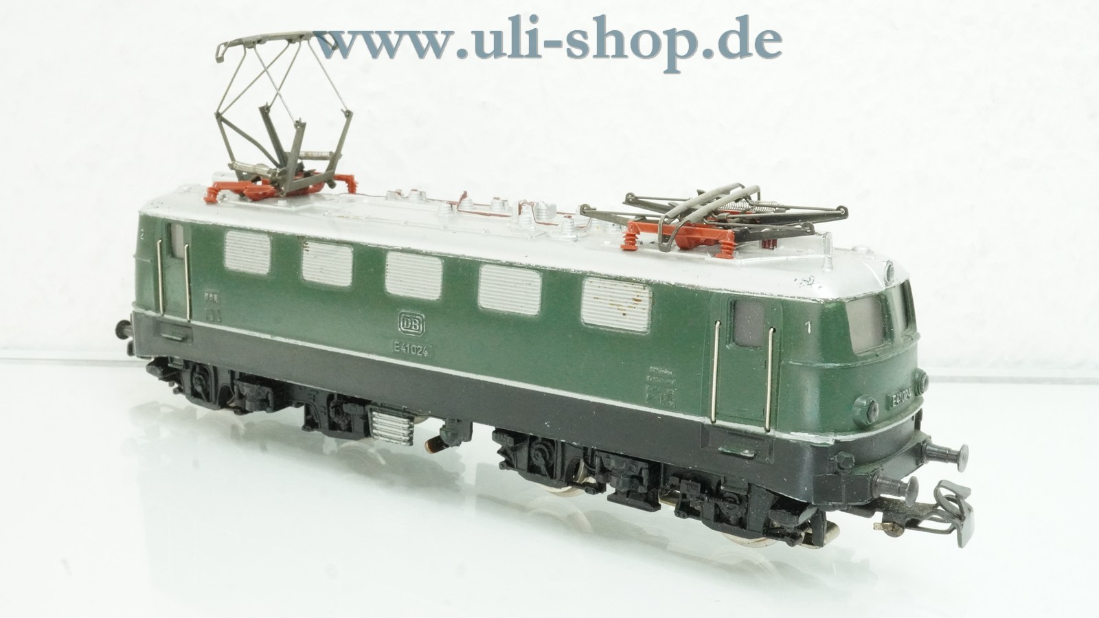 Märklin H0 E-Lok mit der Artikelnummer 3034 Br. E41 024 grün der DB. Der Artikel ist für den Betrieb mit Wechselstrom vorgesehen. Die Lok ist analog, sie kann daher nicht auf digital gesteuerten Anlagen fahren. Die Originalverpackung ist leider nicht mehr vorhanden.