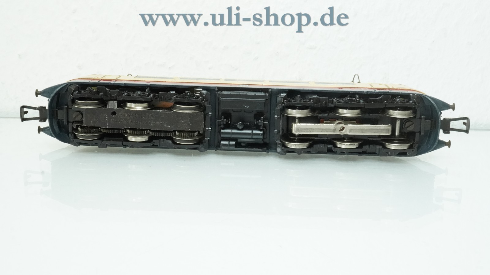 Märklin H0 E-Lok mit der Artikelnummer 3054 Br. 103 113-7 der DB mit schwarzem Rahmen. Der Artikel ist für den Betrieb mit Wechselstrom vorgesehen. Die Lok ist analog, sie kann daher nicht auf digital gesteuerten Anlagen fahren. Die Originalverpackung ist leider nicht mehr vorhanden.