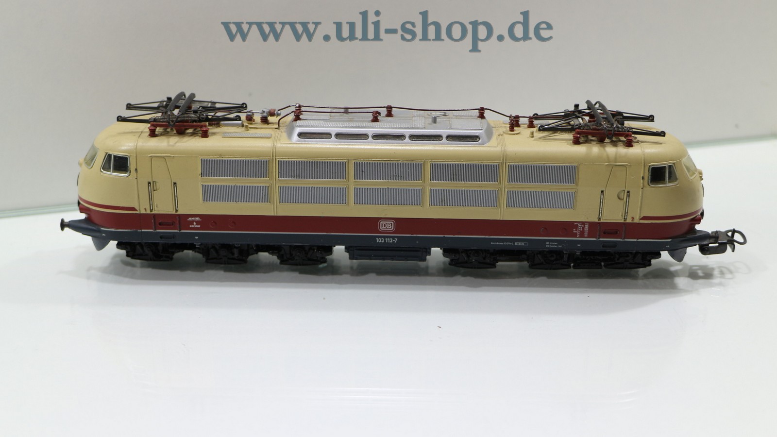 Märklin H0 E-Lok mit der Artikelnummer 3054 Br. 103 113-7 der DB. Der Artikel ist für den Betrieb mit Wechselstrom vorgesehen. Die Lok ist analog, sie kann daher nicht auf digital gesteuerten Anlagen fahren. Die Originalverpackung ist vorhanden.