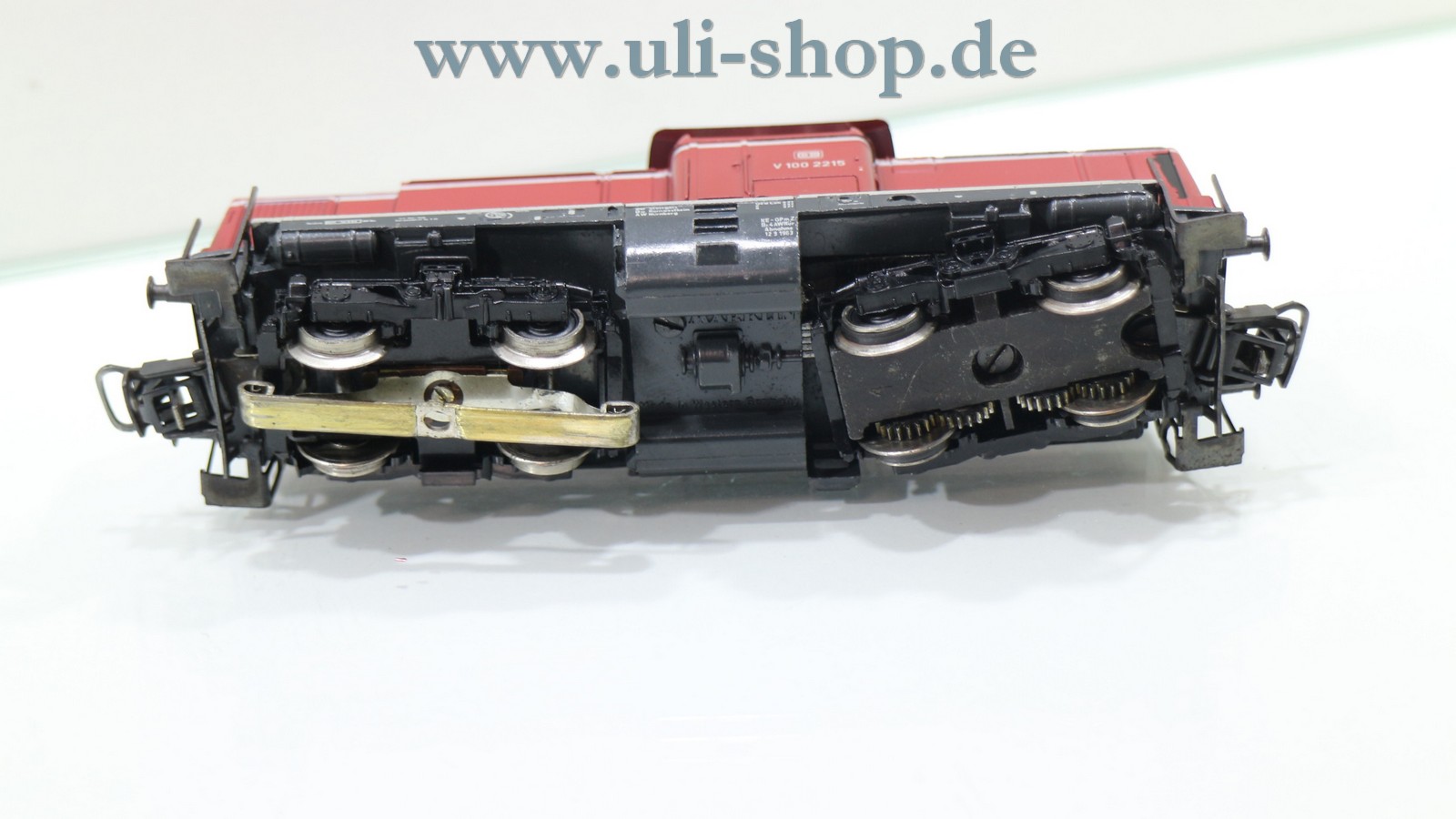 Märklin H0 Diesellok mit der Artikelnummer 3072 Br. V100 2215 der DB. Der Artikel ist für den Betrieb mit Wechselstrom vorgesehen. Die Lok ist analog, sie kann daher nicht auf digital gesteuerten Anlagen fahren. Die Originalverpackung ist vorhanden.