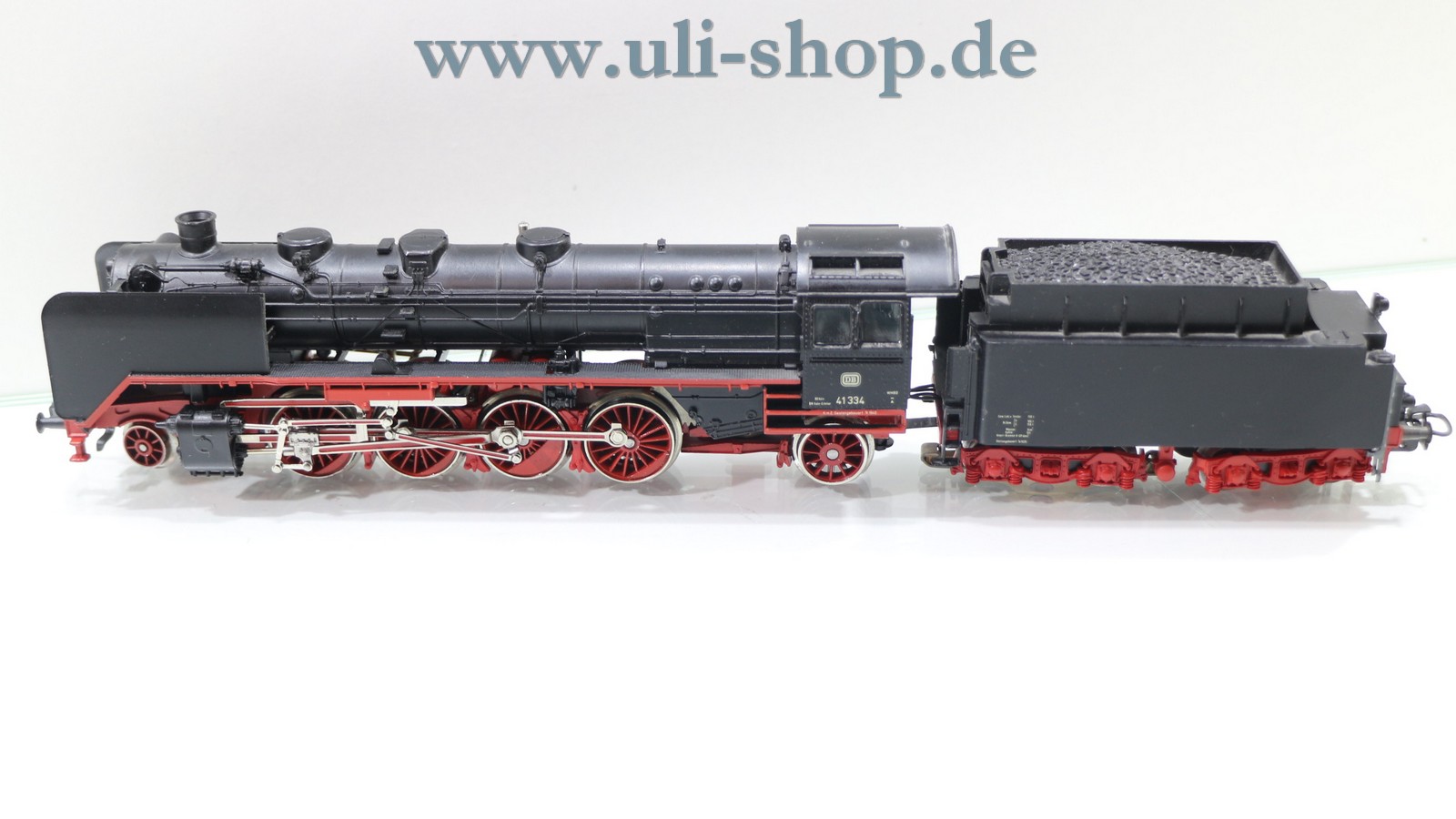 Märklin H0 Dampflok mit der Artikelnummer 3082 Br. 41 334 der DB. Der Artikel ist für den Betrieb mit Wechselstrom vorgesehen. Die Lok ist analog, sie kann daher nicht auf digital gesteuerten Anlagen fahren. Die Originalverpackung ist vorhanden.