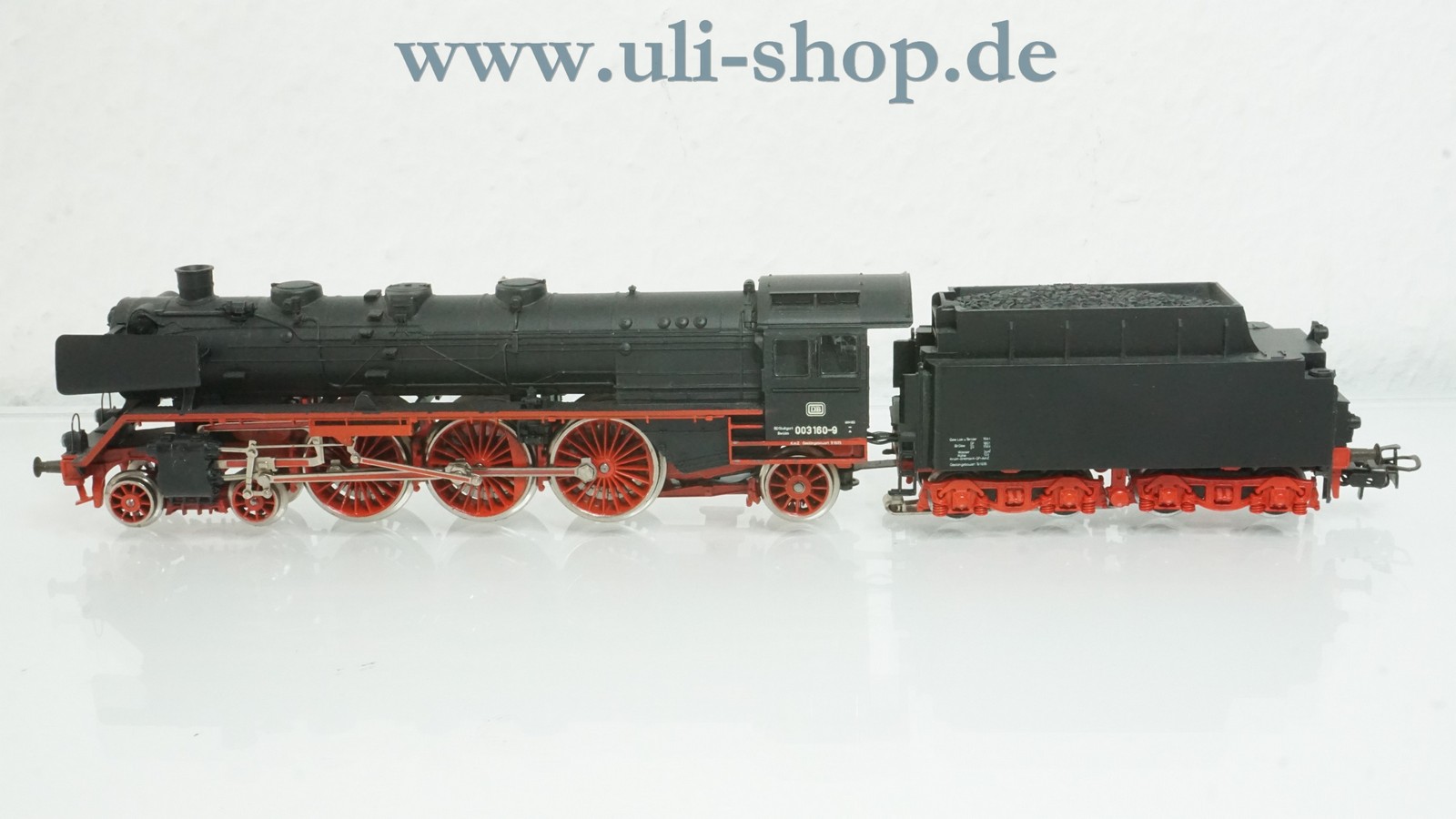 Märklin H0 Dampflok mit der Artikelnummer 3085 Br. 003 160-9 DB. Der Artikel ist für den Betrieb mit Wechselstrom vorgesehen. Die Lok ist analog, sie kann daher nicht auf digital gesteuerten Anlagen fahren. Die Originalverpackung ist vorhanden.