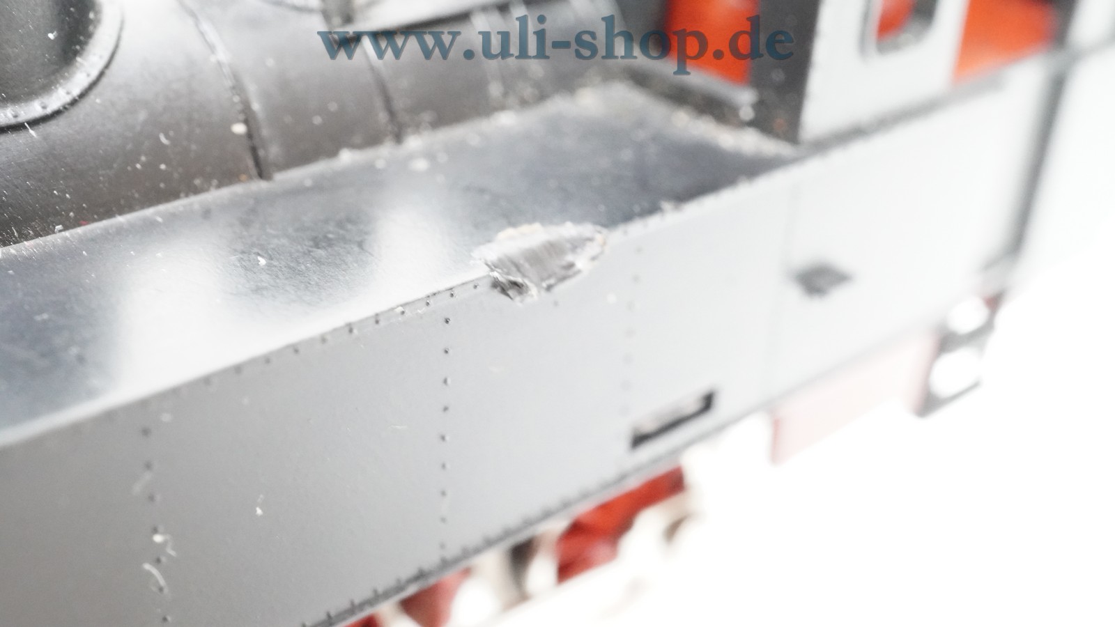 Den optischen Zustand würde ich als bespielt/gebraucht mit normalen Gebrauchsspuren (durch Spielbetrieb) bezeichnen. Die Lok hat auf einer Seite eine kleine Macke.