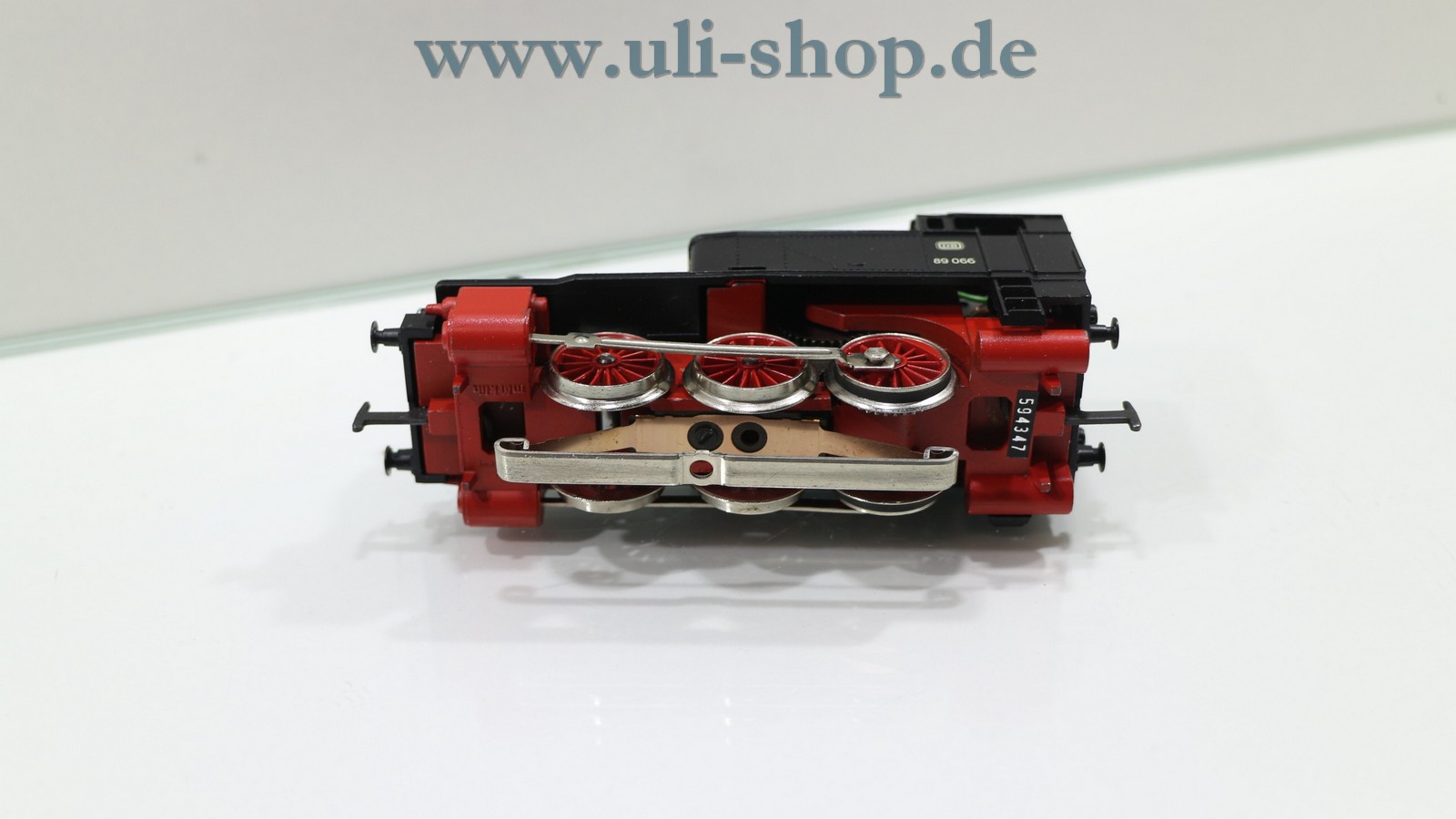 Märklin H0 Dampflok mit der Artikelnummer 3104 Br. 89 066 der DB. Der Artikel ist für den Betrieb mit Wechselstrom vorgesehen. Die Lok ist mit einem Digital-Decoder ausgestattet. Die Originalverpackung ist vorhanden.