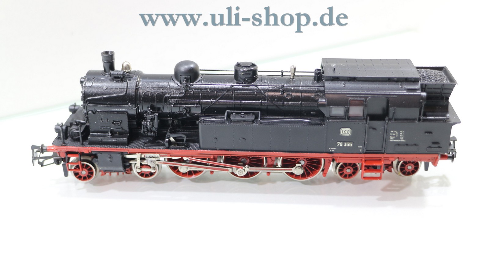 Märklin H0 Dampflok mit der Artikelnummer 3106 Br. 78 355 DB. Der Artikel ist für den Betrieb mit Wechselstrom vorgesehen. Die Lok ist analog, sie kann daher nicht auf digital gesteuerten Anlagen fahren. Die Originalverpackung ist vorhanden.