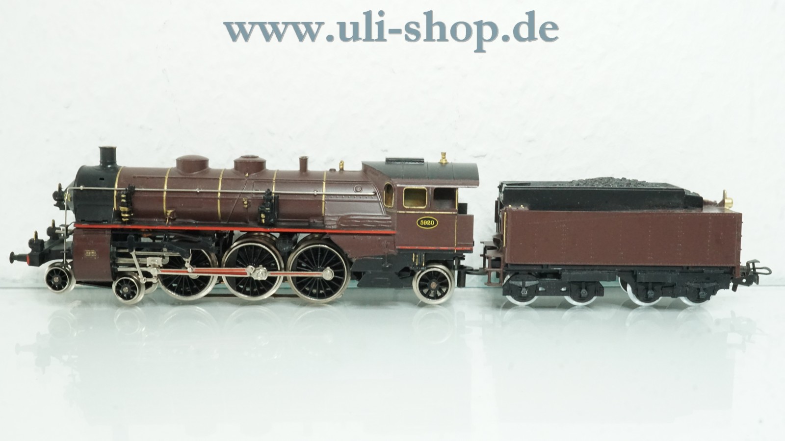 Märklin H0 Dampflok mit der Artikelnummer 3111 Br. 5920 braun der SNCB. Der Artikel ist für den Betrieb mit Wechselstrom vorgesehen. Die Lok ist analog, sie kann daher nicht auf digital gesteuerten Anlagen fahren. Die Originalverpackung ist vorhanden.