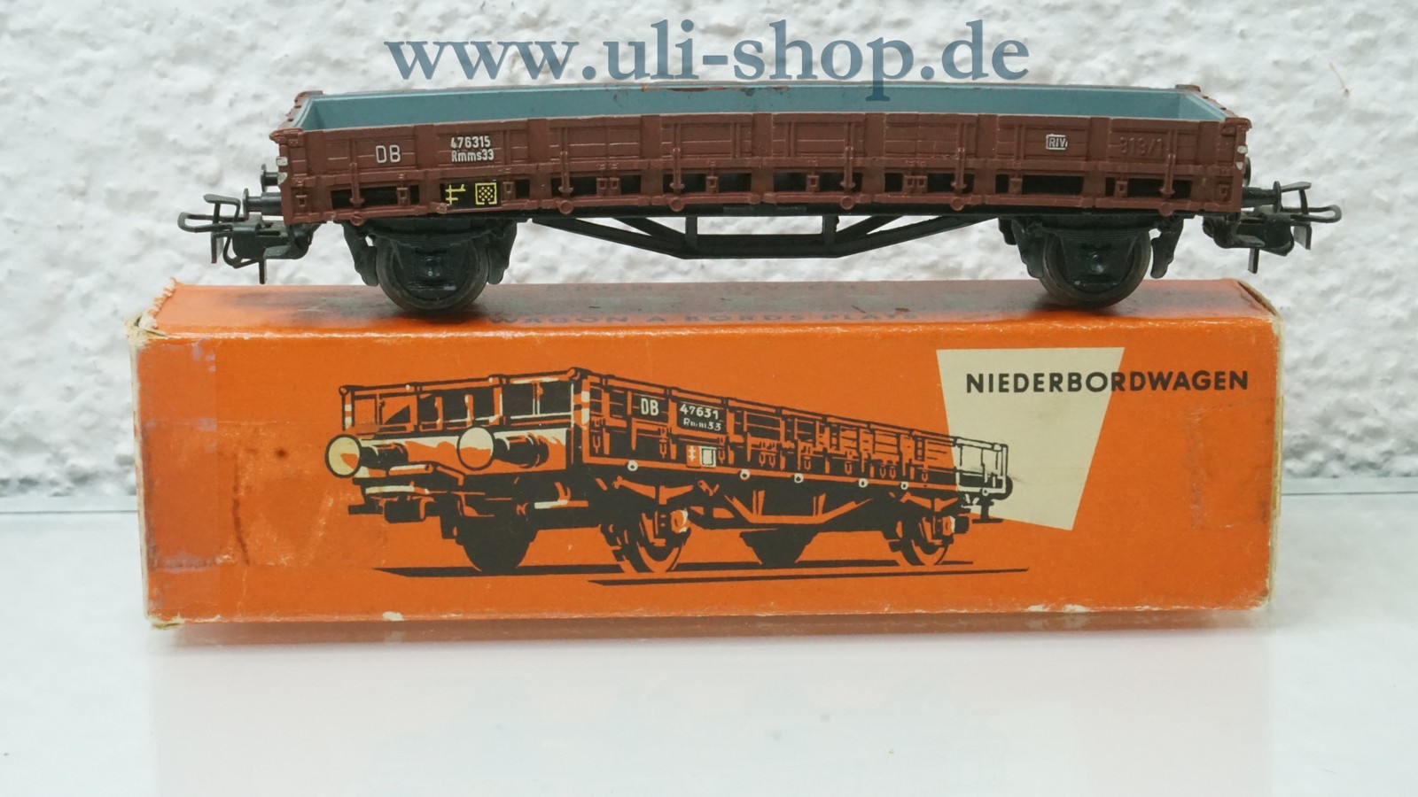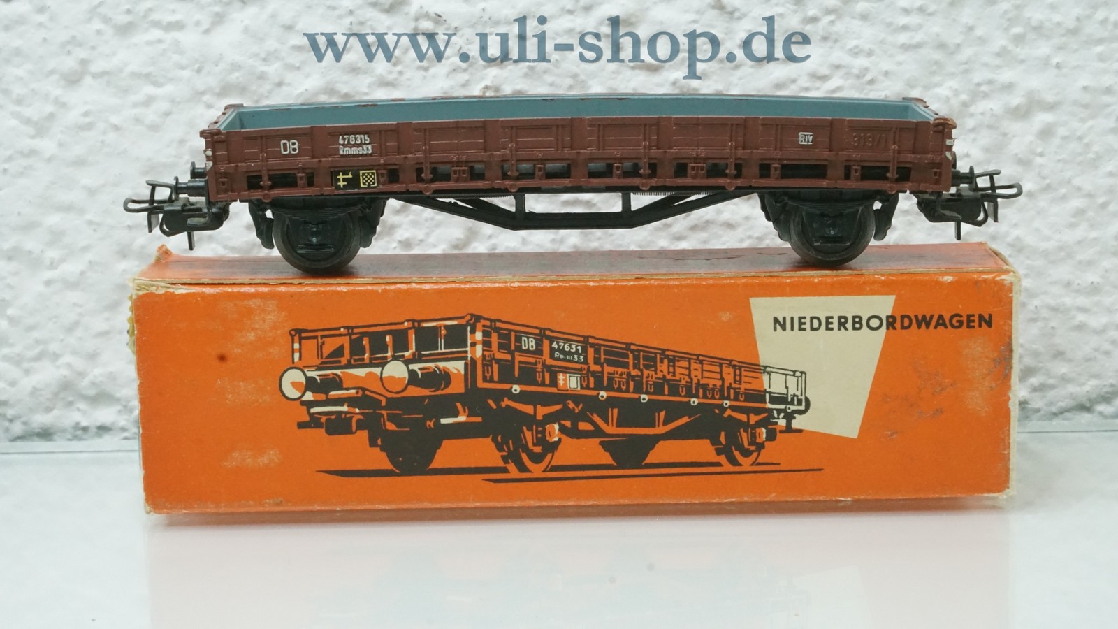 Märklin H0 Güterwagen mit der Artikelnummer 313/1 Niederbordwagen. Der Artikel ist für den Betrieb mit Wechselstrom vorgesehen. Die Originalverpackung ist vorhanden. Die Halterungen für die Rungen sind teilweise beschädigt/abgebrochen. Es sind keine Rungen vorhanden.