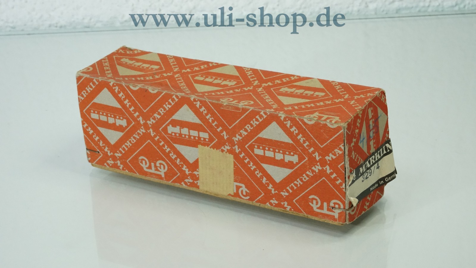 Märklin H0 Leerkarton mit der Artikelnummer 329/4 Personenwagen. Beschreibung optischer Zustand: Den optischen Zustand würde ich als bespielt/gebraucht mit normalen Gebrauchsspuren (durch Spielbetrieb) bezeichnen. Es handelt sich hier nur um den Leerkarton ohne Inhalt.