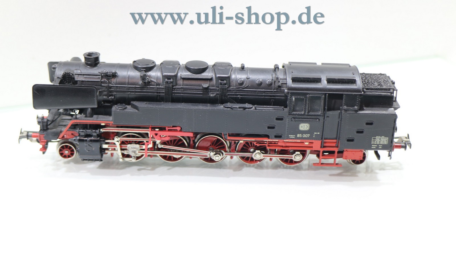 Märklin H0 Dampflok mit der Artikelnummer 3309 Br. 85 007 der DB. Der Artikel ist für den Betrieb mit Wechselstrom vorgesehen. Die Lok ist analog, sie kann daher nicht auf digital gesteuerten Anlagen fahren. Die Originalverpackung ist vorhanden.