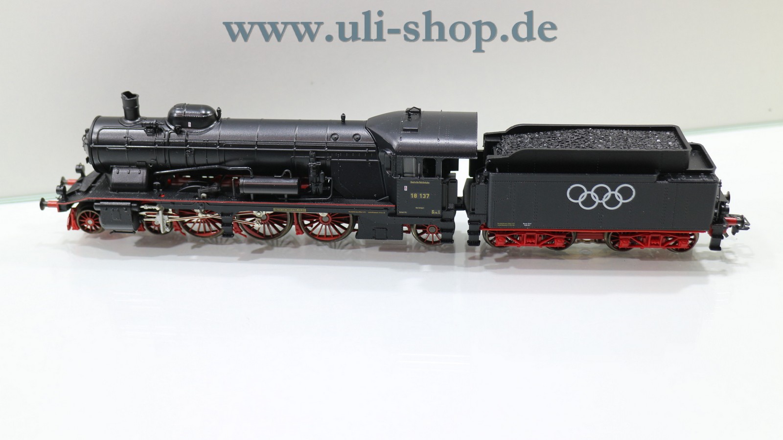 Märklin H0 Dampflok mit der Artikelnummer 34112 Br. 18 137 der DRG. Der Artikel ist für den Betrieb mit Wechselstrom vorgesehen. Die Lok ist mit einem Delta-Modul ausgestattet und kann auch auf analogen und digital gesteuerten Anlagen fahren. Die Originalverpackung ist vorhanden. MHI Sonderserie 1996.