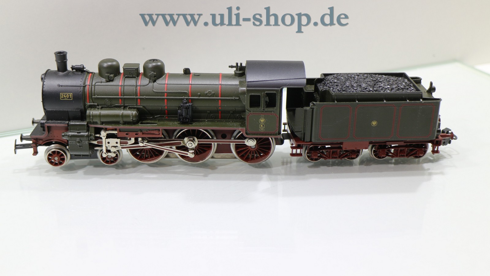 Märklin H0 Dampflok mit der Artikelnummer 34988 P8 2401 Baden. Der Artikel ist für den Betrieb mit Wechselstrom vorgesehen. Die Lok ist mit einem Delta-Modul ausgestattet und kann auch auf analogen und digital gesteuerten Anlagen fahren. Die Originalverpackung ist vorhanden.