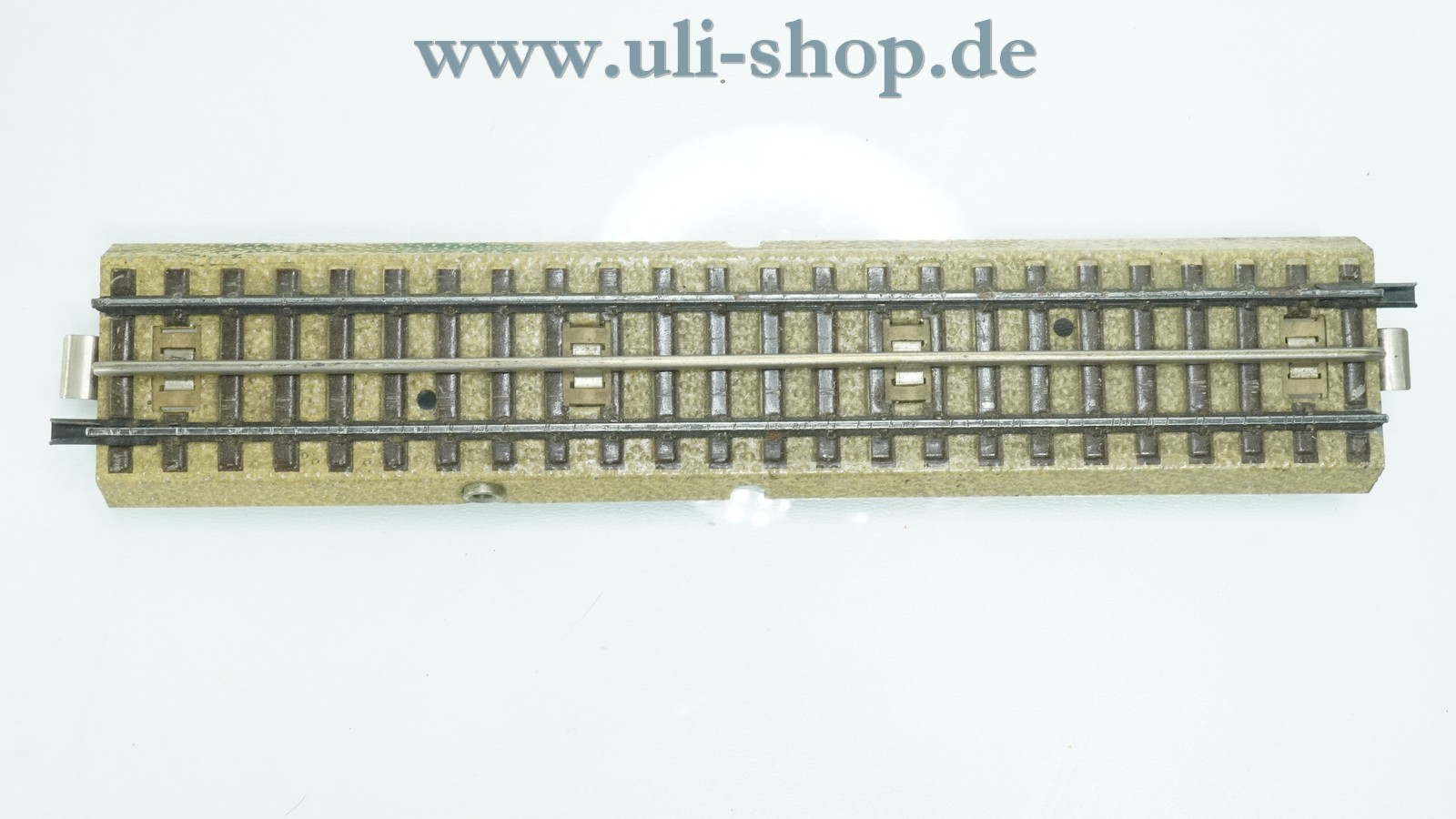 Märklin H0 Gleismaterial mit der Artikelnummer 3600 D 1/1 N M-Gleis gerade 1/1 Gleis 180 mm Vollprofil. Es handelt sich bei dem Artikel um die Messing-Vollprofil-Ausführung des Gleises (