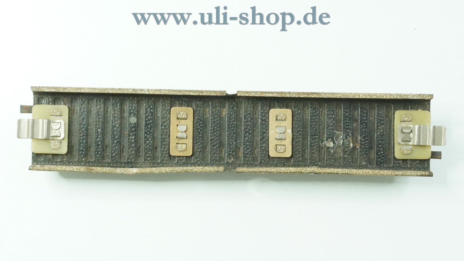 Den optischen Zustand würden wir als stark bespielt/gebraucht mit starken Gebrauchsspuren und Beschädigungen bezeichnen. Das Gleis weist starke Gebrauchsspuren auf. Es können an dem Gleis Kratzer, größere Farb- und Kleb-Reste sowie Rost vorhanden sein. Das Gleis ist aber dennoch zu verwenden.