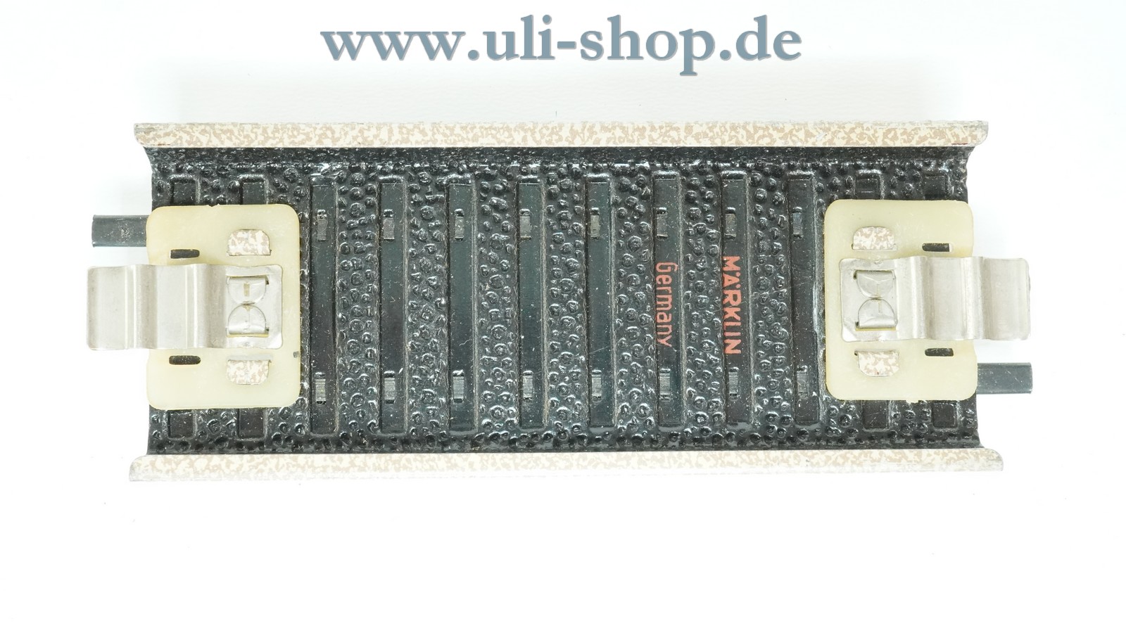 Märklin H0 Gleismaterial mit der Artikelnummer 3600 D 1/2 N M-Gleis gerade 1/2 Gleis 90 mm Vollprofil. Es handelt sich bei dem Artikel um die Messing-Vollprofil-Ausführung des Gleises (