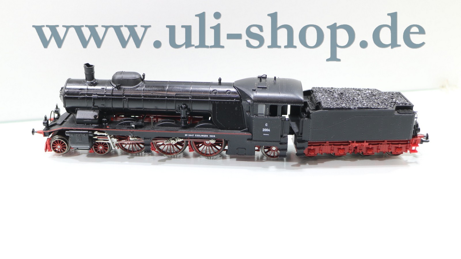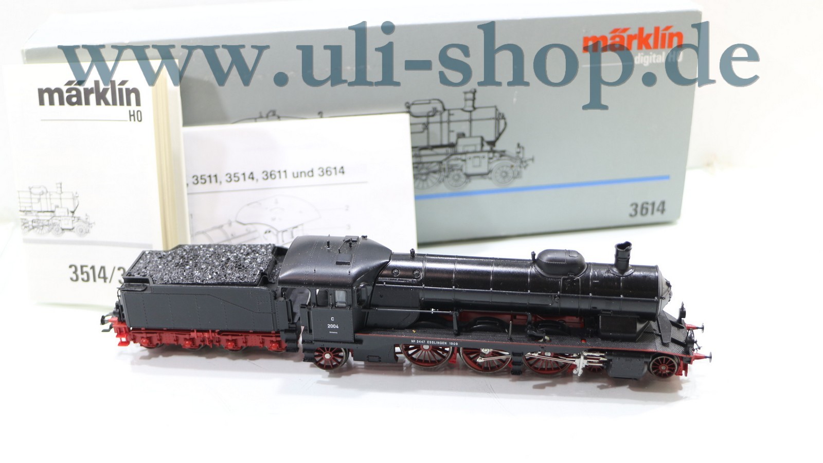 Märklin H0 Dampflok mit der Artikelnummer 3614 Klasse C 2004 der K.W.St.E. Der Artikel ist für den Betrieb mit Wechselstrom vorgesehen. Die Lok ist mit einem Digital-Decoder ausgestattet. Die Originalverpackung ist vorhanden. Bei der Lok fehlen die Lokführerfigur und die Heizerfigur.