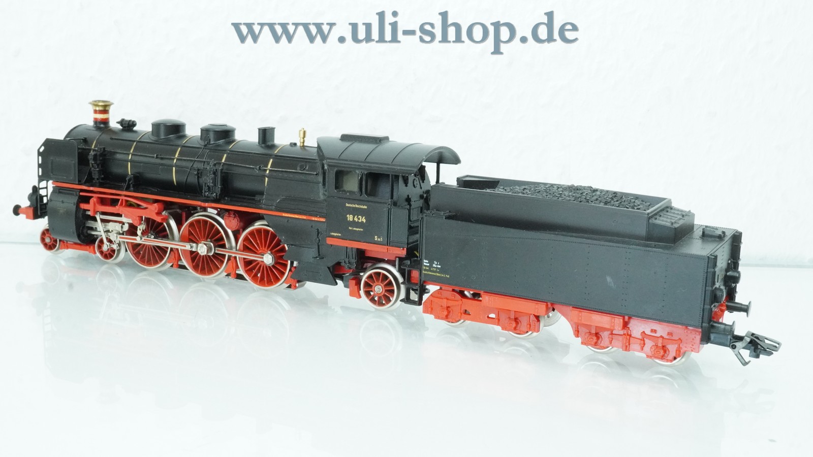 Märklin H0 Dampflok mit der Artikelnummer 3618 Br. 18 434 der DRG. Der Artikel ist für den Betrieb mit Wechselstrom vorgesehen. Die Lok ist mit einem Digital-Decoder ausgestattet. Die Originalverpackung ist vorhanden.