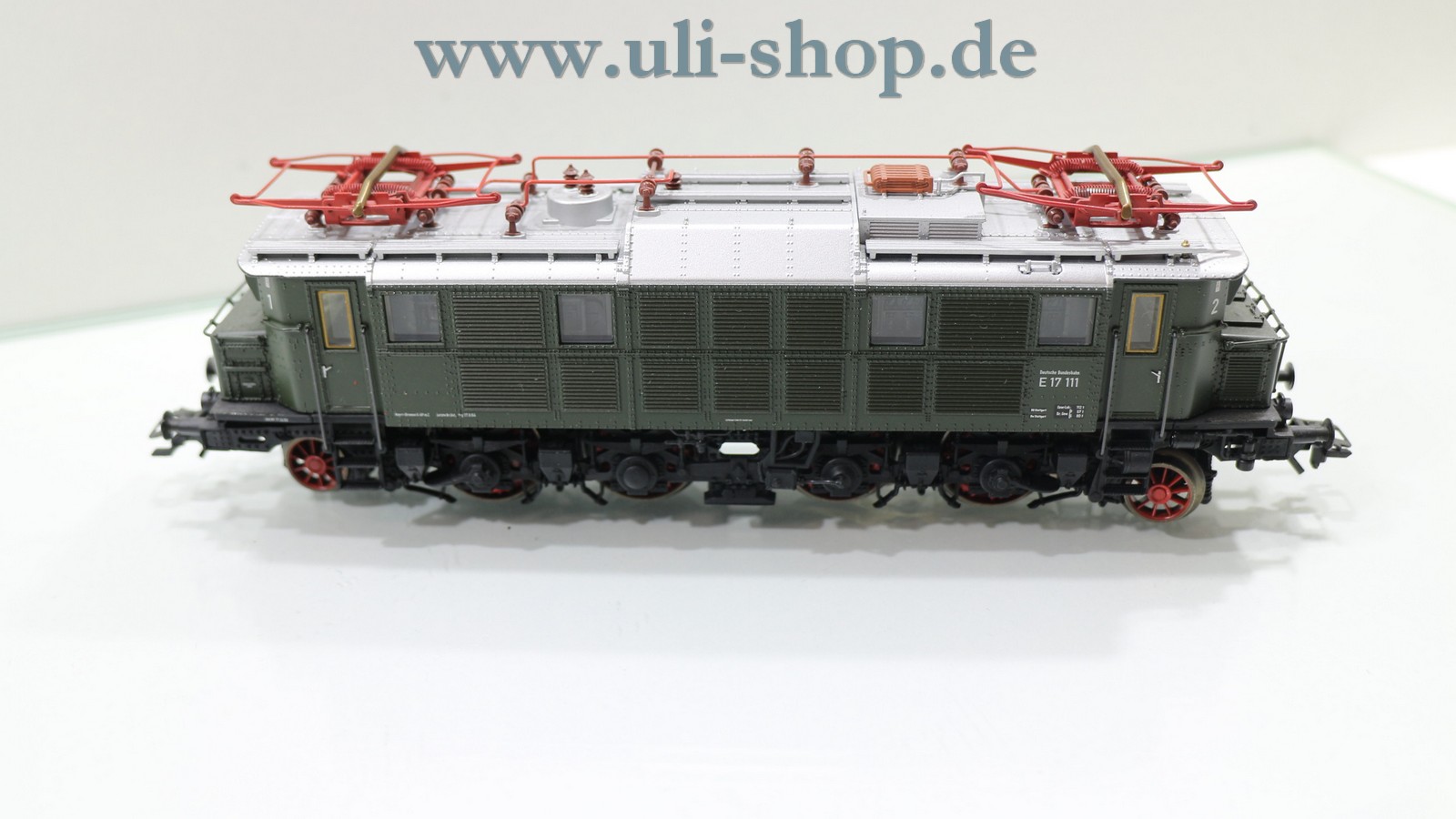 Märklin H0 E-Lok mit der Artikelnummer 37061 Br. 17 111 der DB. Der Artikel ist für den Betrieb mit Wechselstrom vorgesehen. Die Lok ist mit einem digitalen mfx-Decoder ausgestattet und verfügt über einfache Soundfunktionen (kein Fahrgeräusch). Die Originalverpackung ist vorhanden.
