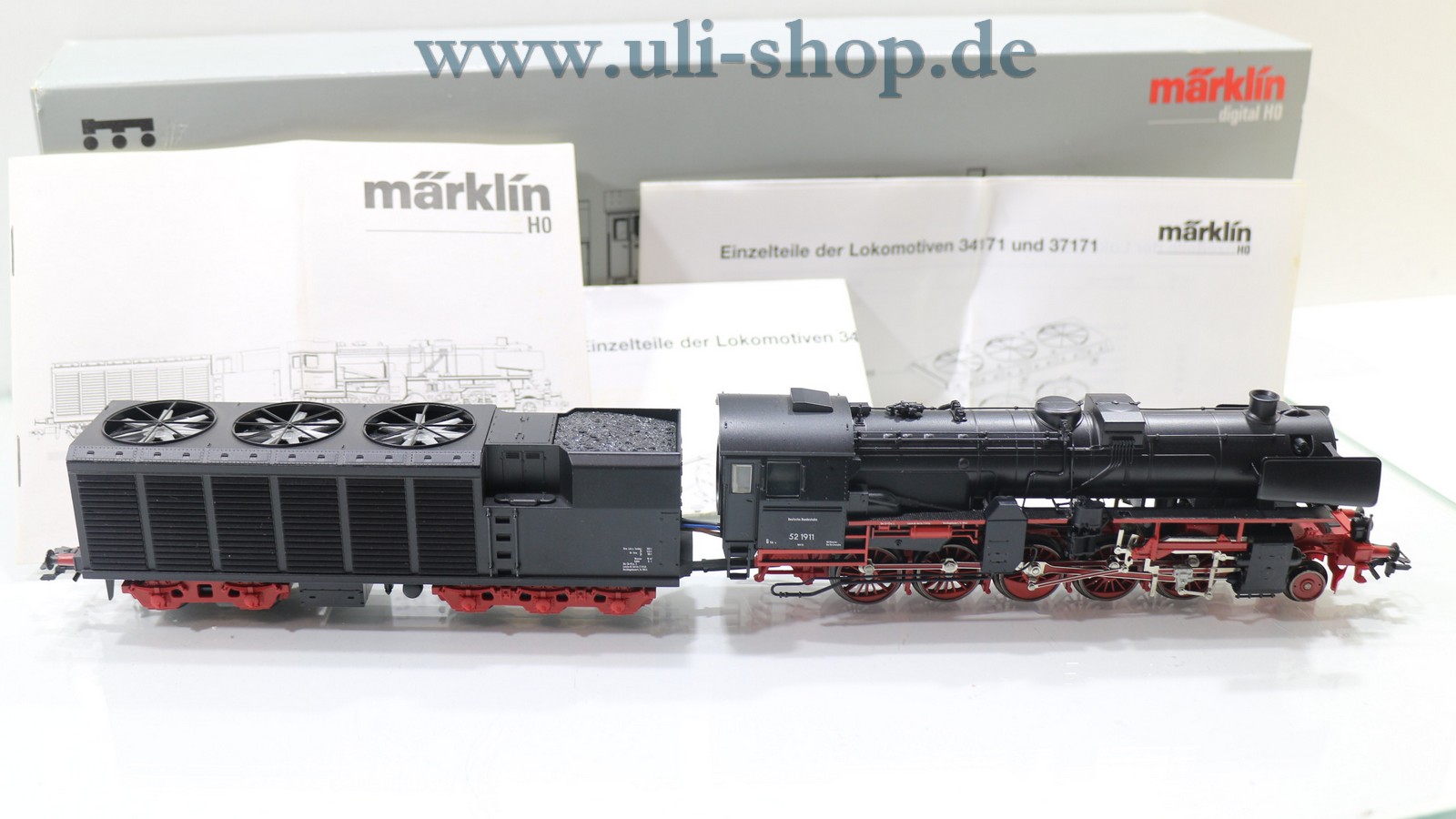 Märklin H0 Dampflok mit der Artikelnummer 37171 Br. 52 1911 der DB. Der Artikel ist für den Betrieb mit Wechselstrom vorgesehen. Die Lok ist mit einem Digital-Decoder ausgestattet. Die Originalverpackung ist vorhanden.