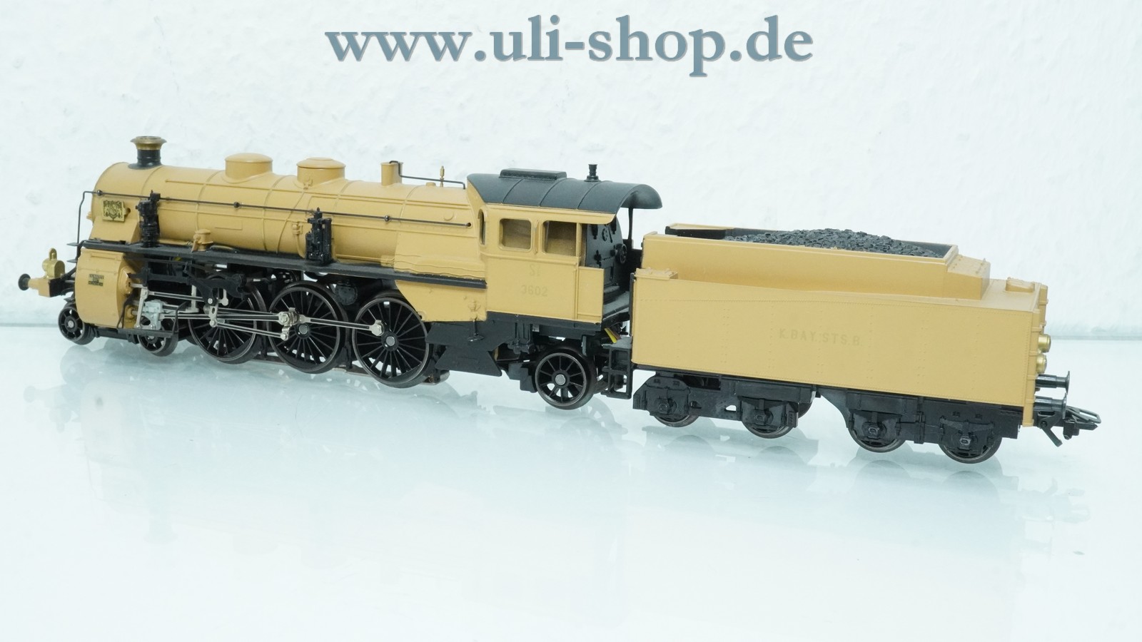 Märklin H0 Dampflok mit der Artikelnummer 37185 S 3/6 "3602" der K.Bay.Sts.B. Ockergelb. Der Artikel ist für den Betrieb mit Wechselstrom vorgesehen. Die Lok ist mit einem Digital-Decoder ausgestattet. Die Originalverpackung ist vorhanden.