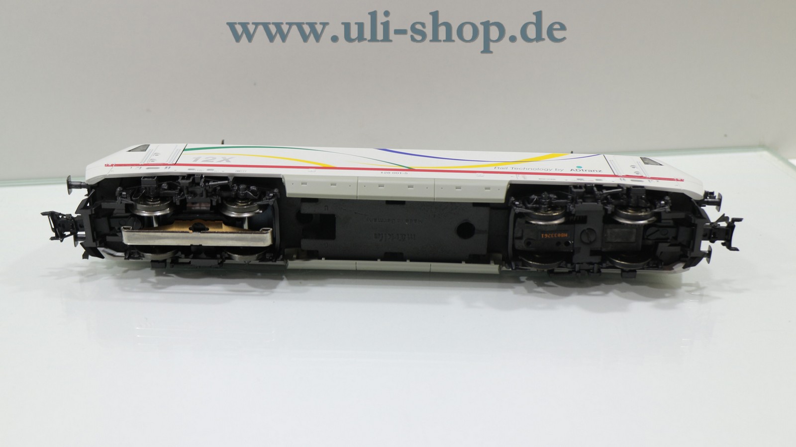 Märklin H0 E-Lok mit der Artikelnummer 37383 Br. 12X 128 001-5 der Adtranz. Der Artikel ist für den Betrieb mit Wechselstrom vorgesehen. Die Lok ist mit einem Digital-Decoder ausgestattet. Die Originalverpackung ist vorhanden. Die Lok ist eine Sonderserie aus dem Jahr 1998.