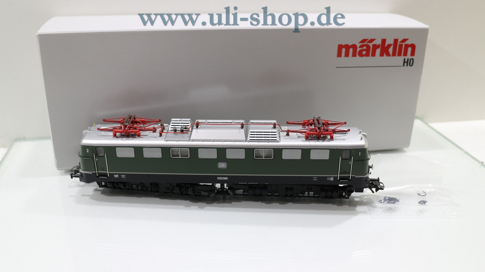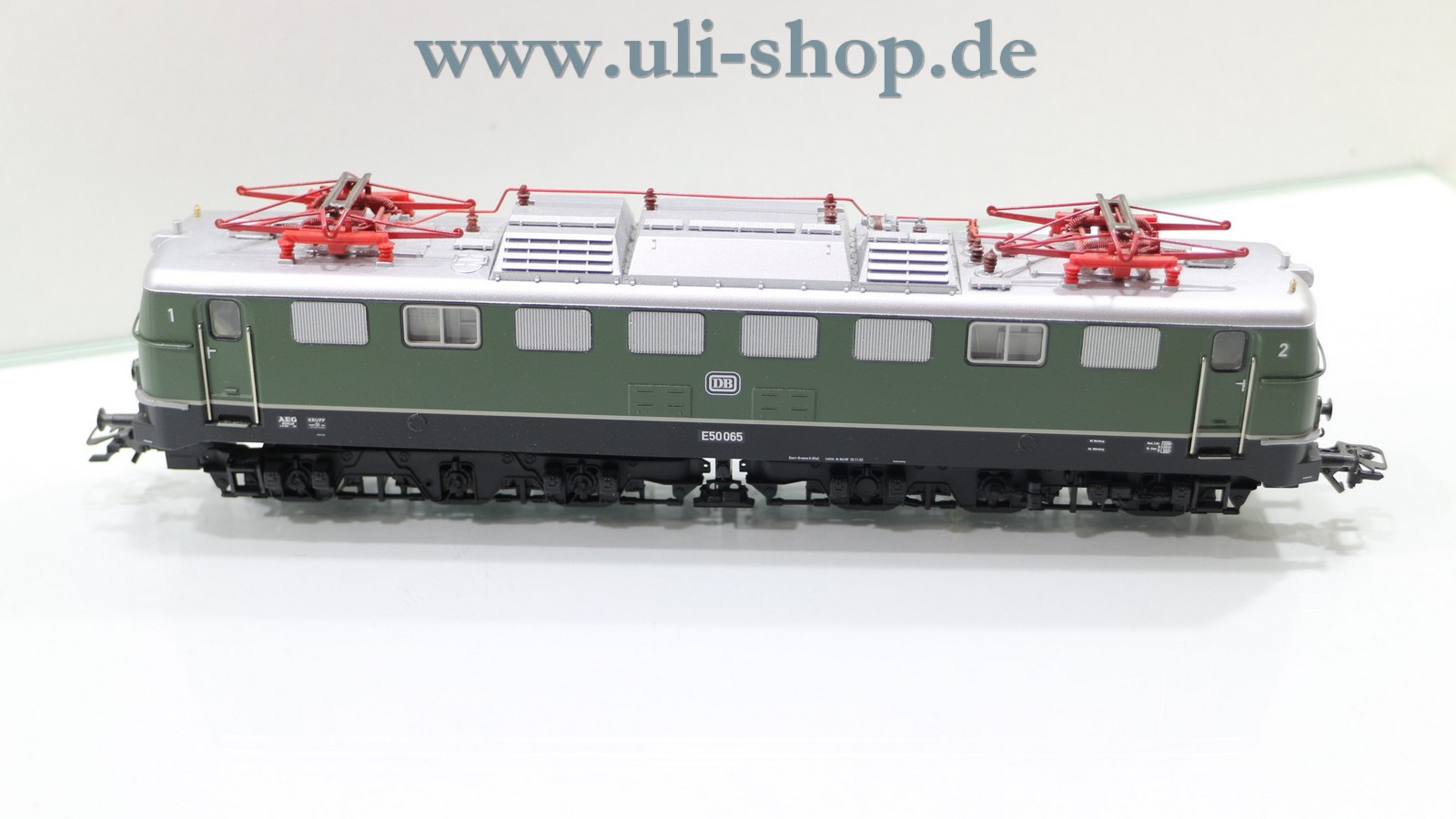 Märklin H0 E-Lok mit der Artikelnummer 37855 Br. 50 065 der DB. Der Artikel ist für den Betrieb mit Wechselstrom vorgesehen. Die Lok ist mit einem digitalen mfx-Decoder ausgestattet und verfügt über etliche Sound-Funktionen (Voll-Sound). Die Originalverpackung ist vorhanden. Die Lok konnte nur über die Oberleitung getestet werden, da der Schleifer fehlt.
