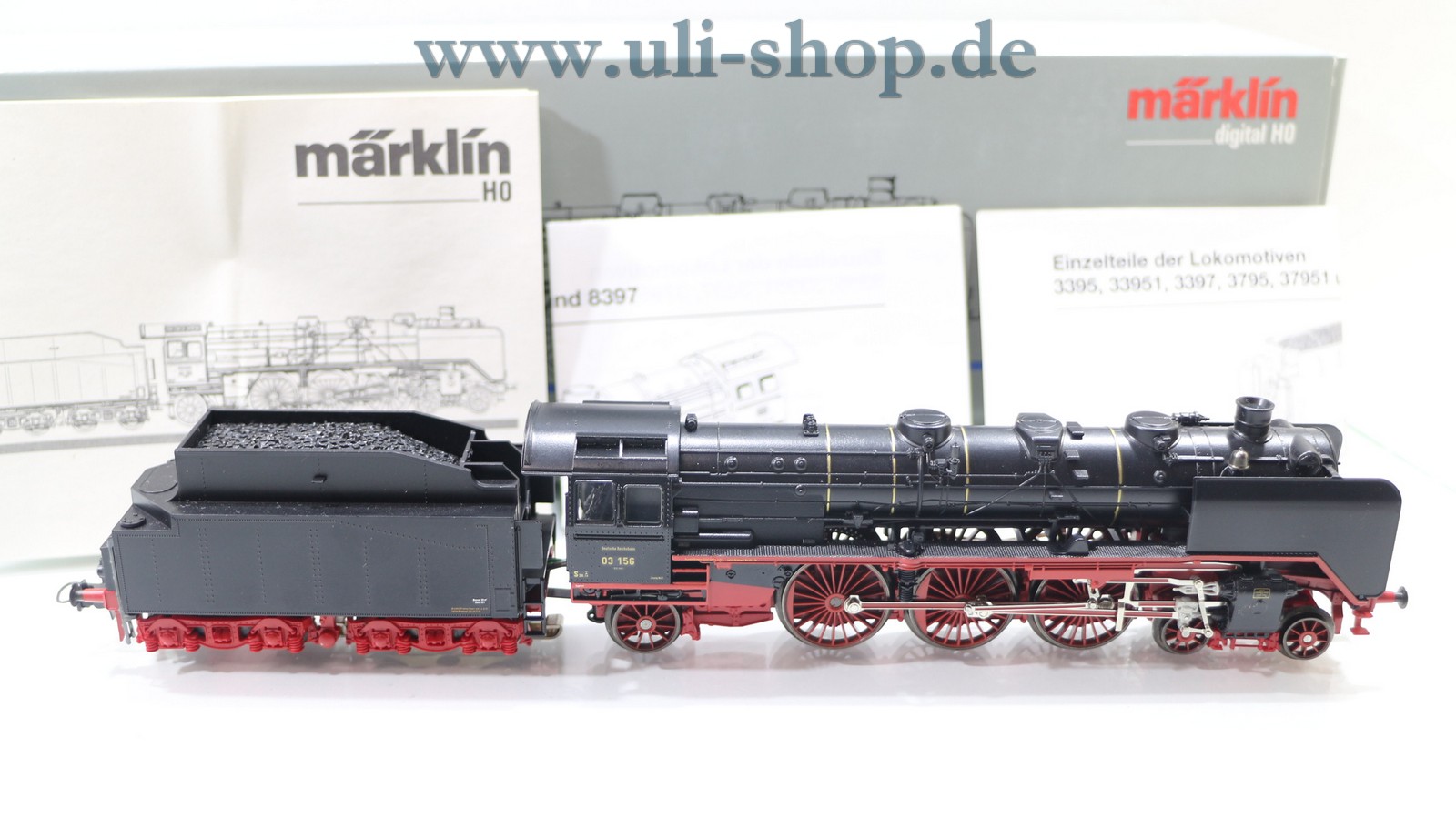 Märklin H0 Dampflok mit der Artikelnummer 37951 Br. 03 156 der DR. Der Artikel ist für den Betrieb mit Wechselstrom vorgesehen. Die Lok ist mit einem Digital-Decoder ausgestattet. Die Originalverpackung ist vorhanden. Die originale Kupplung ist dabei.