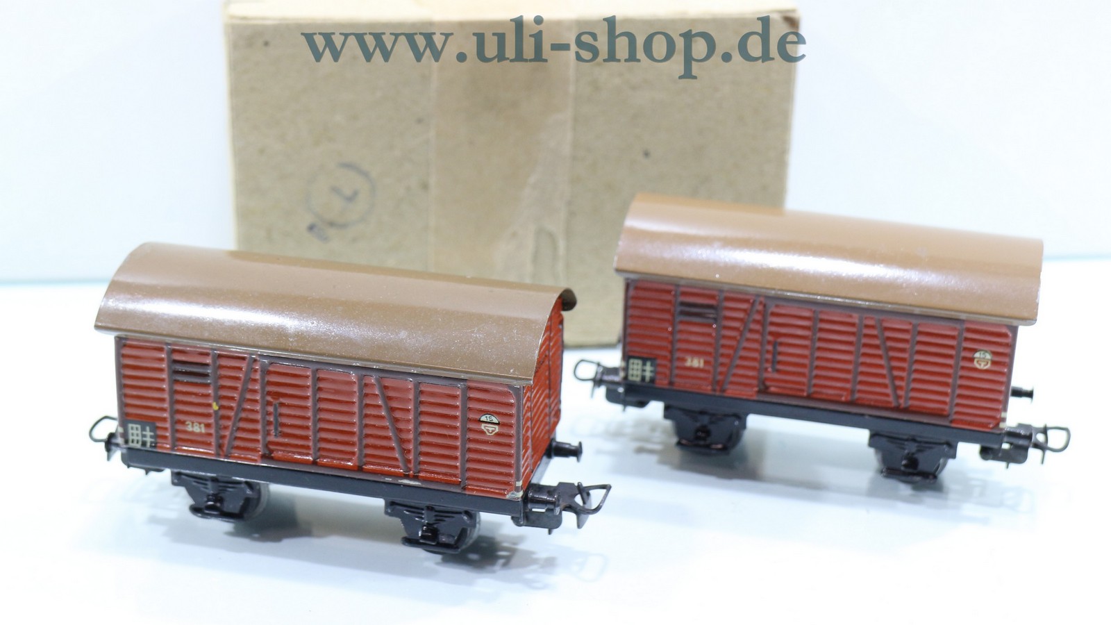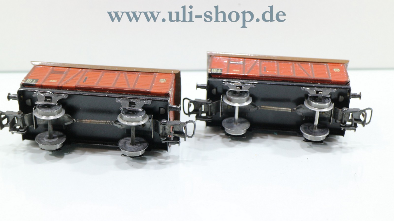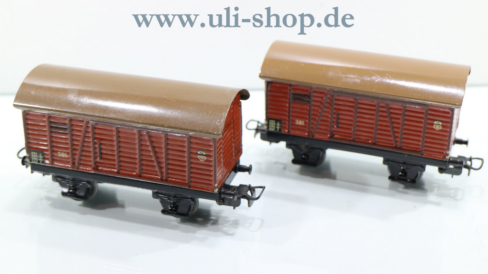 Märklin H0 Güterwagen mit der Artikelnummer 381 Blechwagen. Der Artikel ist für den Betrieb mit Wechselstrom vorgesehen. Die Originalverpackung ist vorhanden. Es handelt sich um ein Set mit zwei Wagen.