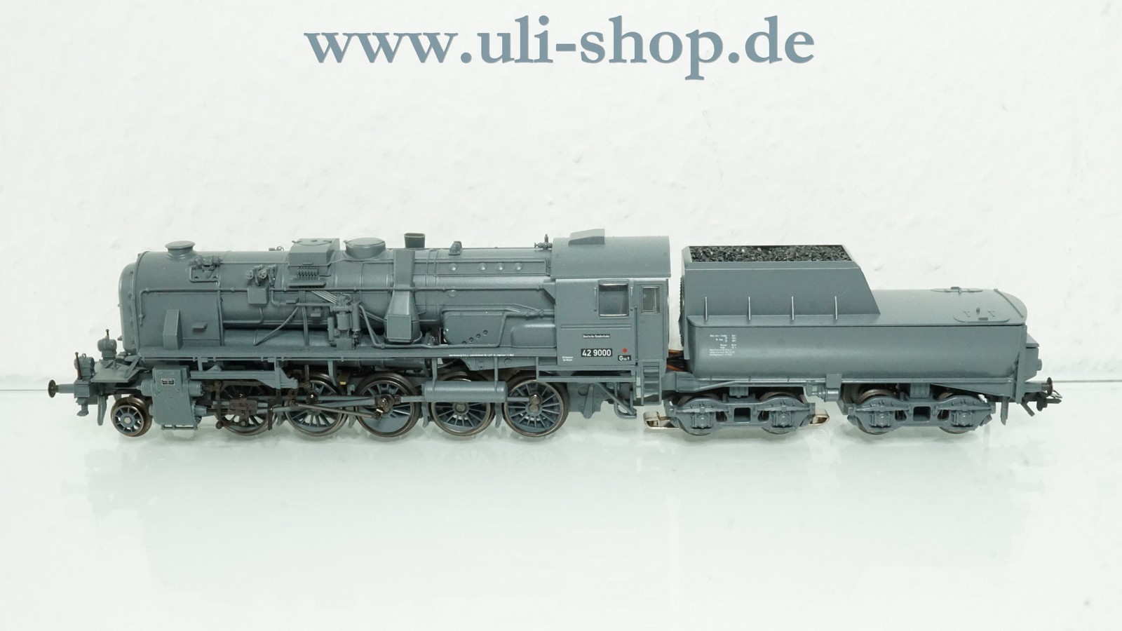 Märklin H0 Dampflok mit der Artikelnummer 39160 Br. 42 9000 der DB Franco Crosti dunkelgrau. Der Artikel ist für den Betrieb mit Wechselstrom vorgesehen. Die Lok ist mit einem Digital-Decoder ausgestattet. Die Originalverpackung ist vorhanden. Die OVP hat Klebespuren.