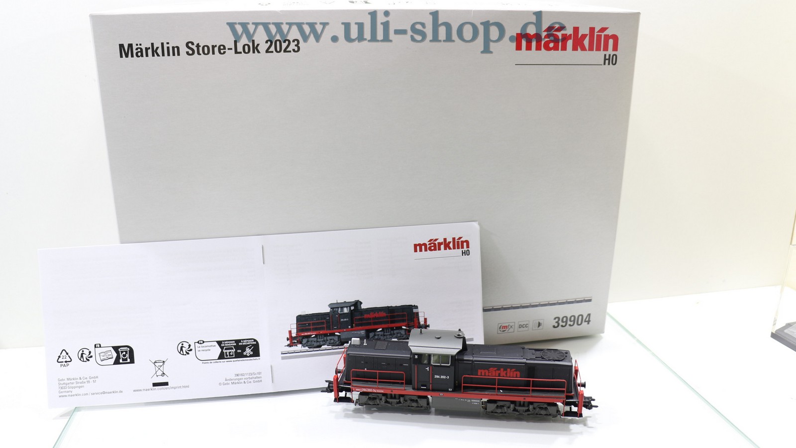 Märklin H0 Diesellok mit der Artikelnummer 39904 Br. 294 "Store Lok 2023". Der Artikel ist für den Betrieb mit Wechselstrom vorgesehen. Die Lok ist mit einem digitalen mfx-Decoder ausgestattet und verfügt über etliche Sound-Funktionen (Voll-Sound). Die Originalverpackung ist vorhanden.