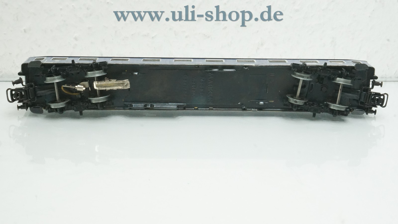 Märklin H0 Personenwagen mit der Artikelnummer 4027 1. Klasse D-Zug Wagen blau der DB Blechwagen. Der Artikel ist für den Betrieb mit Wechselstrom vorgesehen. Die Originalverpackung ist vorhanden.
