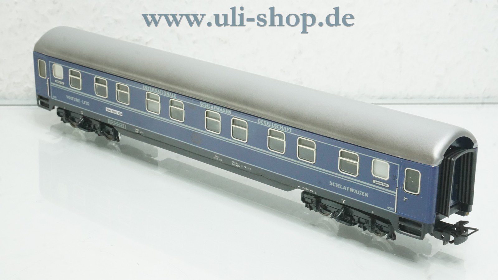 Märklin H0 Personenwagen mit der Artikelnummer 4029 D-Zug internationaler Schlafwagen blau Blechwagen. Der Artikel ist für den Betrieb mit Wechselstrom vorgesehen. Die Originalverpackung ist vorhanden.