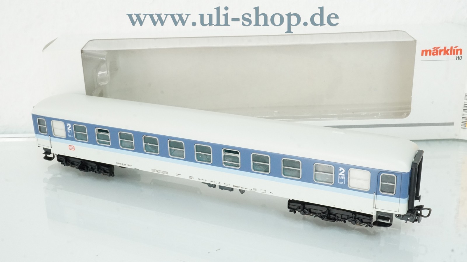 Märklin H0 Personenwagen mit der Artikelnummer 4032 Inter Regio Schnellzugwagen 2. Klasse der DB Blechwagen. Der Artikel ist für den Betrieb mit Wechselstrom vorgesehen. Die Originalverpackung ist vorhanden.
