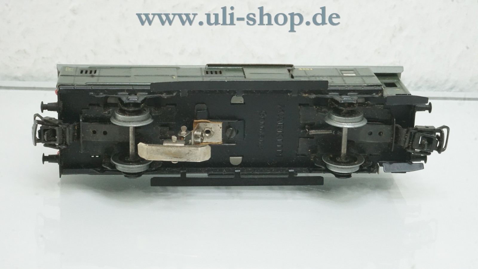 Den optischen Zustand würde ich als bespielt/gebraucht mit normalen Gebrauchsspuren (durch Spielbetrieb) bezeichnen. Der Wagen ist beleuchtet und hat eine rote Schlußbeleuchtung. Der Karton ist beschädigt. Die Originalverpackung hat Gebrauchsspuren (z. B. abgegriffen oder Lagerspuren).