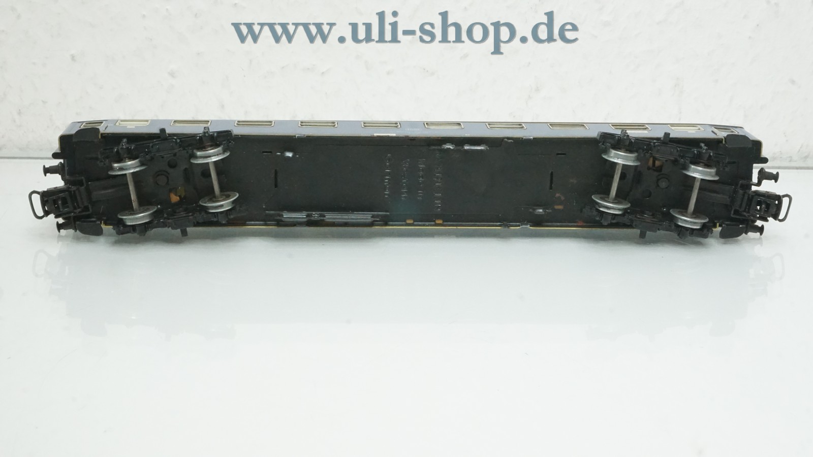 Märklin H0 Personenwagen mit der Artikelnummer 4051 D-Zug Wagen 1. Klasse der DB Blau Blechwagen. Der Artikel ist für den Betrieb mit Wechselstrom vorgesehen. Die Verpackung ist nicht die Originale, sie stammt von einem anderen Artikel.