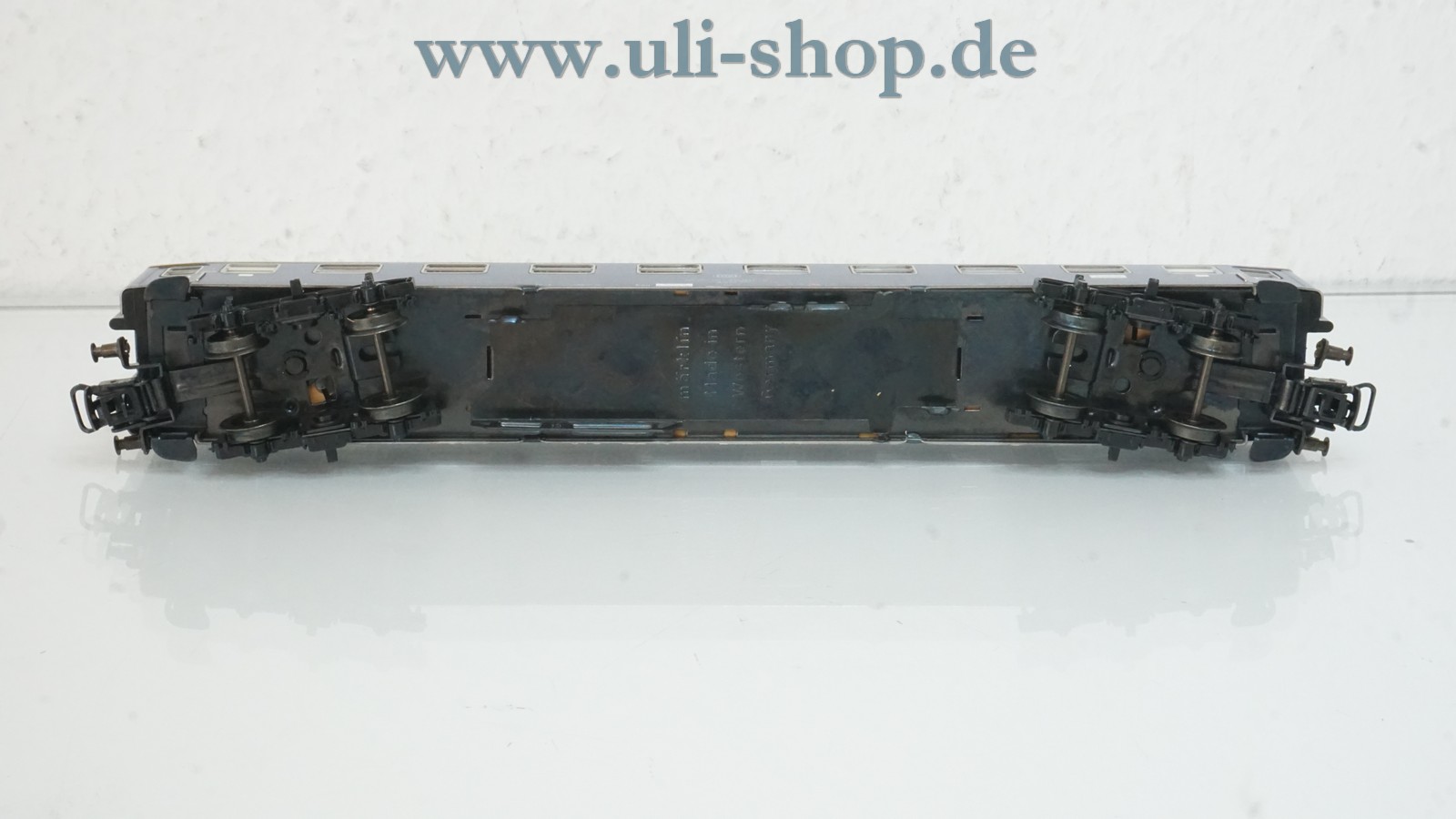Märklin H0 Personenwagen mit der Artikelnummer 4051 D-Zugwagen Blau 1. Klasse der DB Blechwagen. Der Artikel ist für den Betrieb mit Wechselstrom vorgesehen. Die Originalverpackung ist vorhanden.