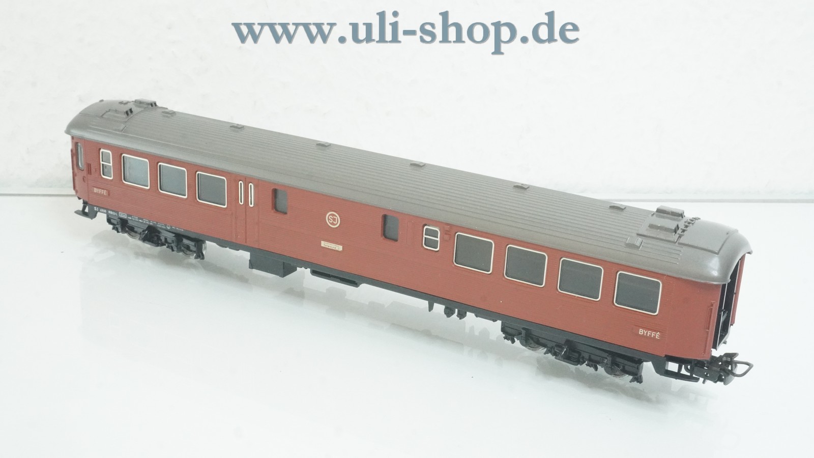 Märklin H0 Personenwagen mit der Artikelnummer 4073 Speisewagen der SJ. Der Artikel ist für den Betrieb mit Wechselstrom vorgesehen. Die Originalverpackung ist vorhanden.