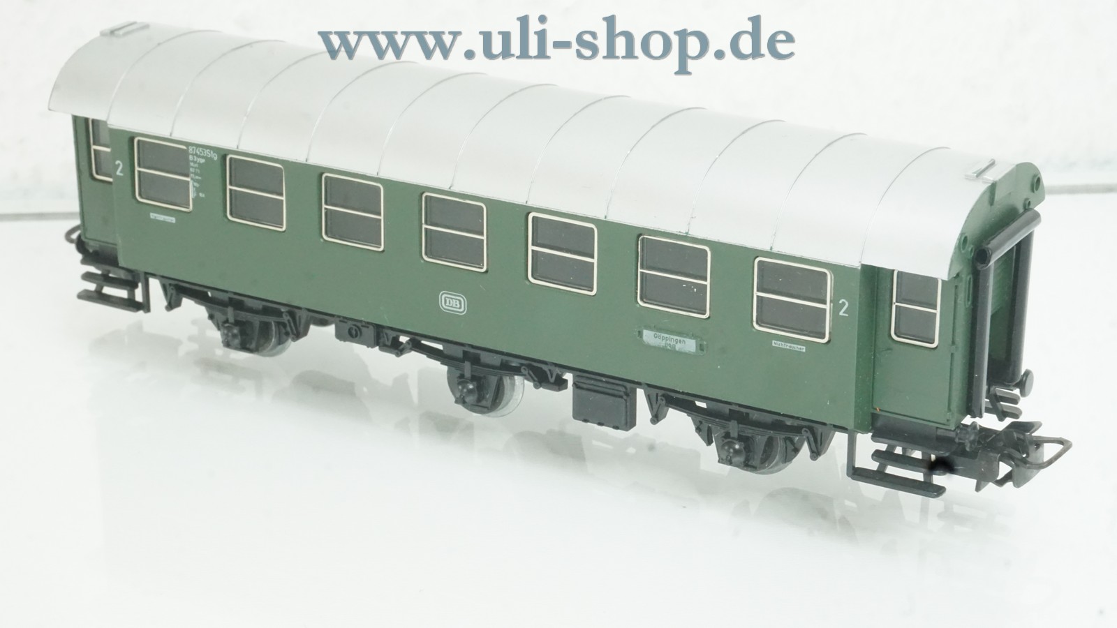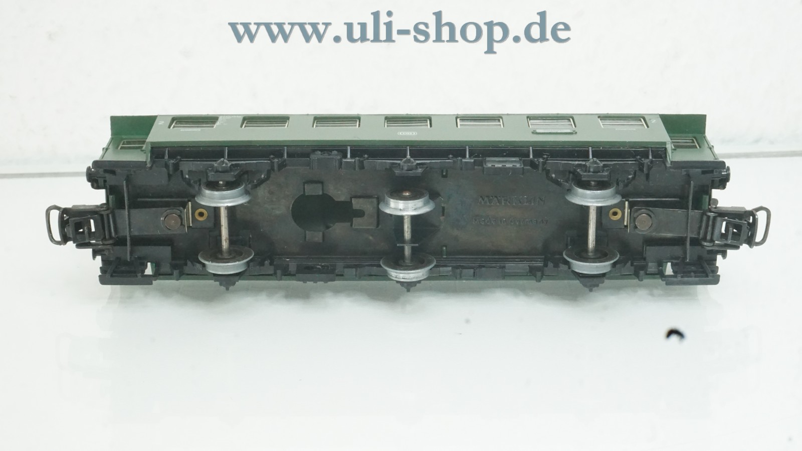 Märklin H0 Personenwagen mit der Artikelnummer 4079 Umbauwagen 2. Klasse der DB. Der Artikel ist für den Betrieb mit Wechselstrom vorgesehen. Die Originalverpackung ist vorhanden. Bei der Verschmutzung, die etwa rechts unten auf den Bildern zu sehen ist, handelt es um eine Verschmutzung der Linse und nicht des Modells.
